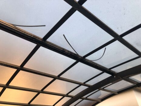 久喜市 病院アプローチテラス屋根 一時撤去および再設置