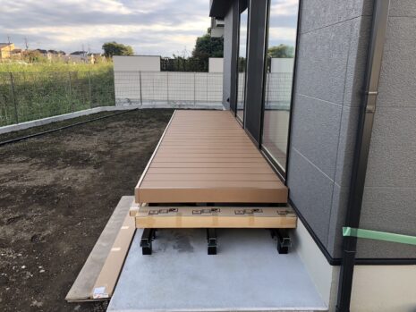 坂戸市 h様邸で三協アルミ ヴィラウッド【アーモンドブラウン色】デッキ工事が完了しました!!