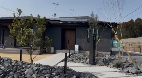【平屋の新築外構】平屋を引き立てる和モダン 新築外構|自然石と光で作るおしゃれな庭