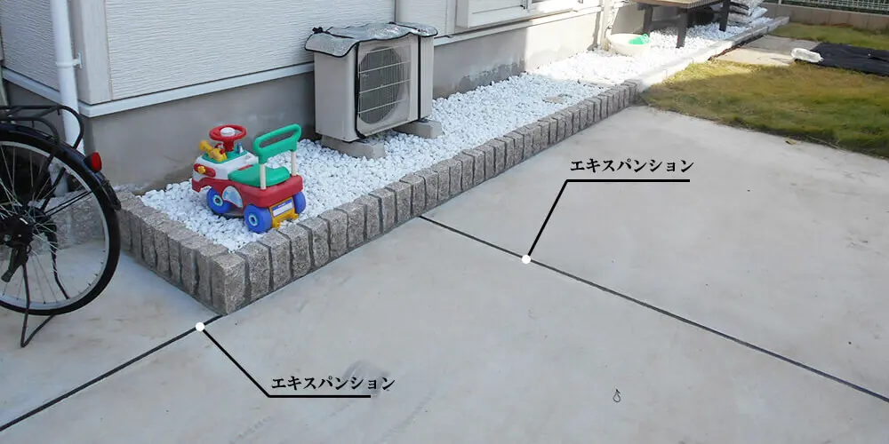 コンクリート1.5mから3mおきに継ぎ目(伸縮目地)を入れると目に見えるクラックをかなり減らすことが出来ます。