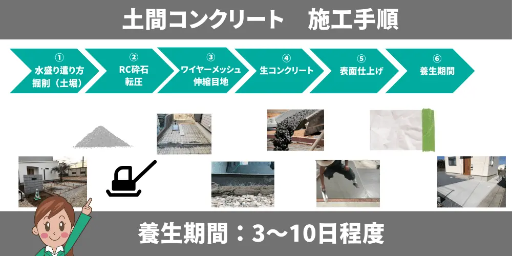 土間コンクリートはどのようにして施工されているのでしょうか。
