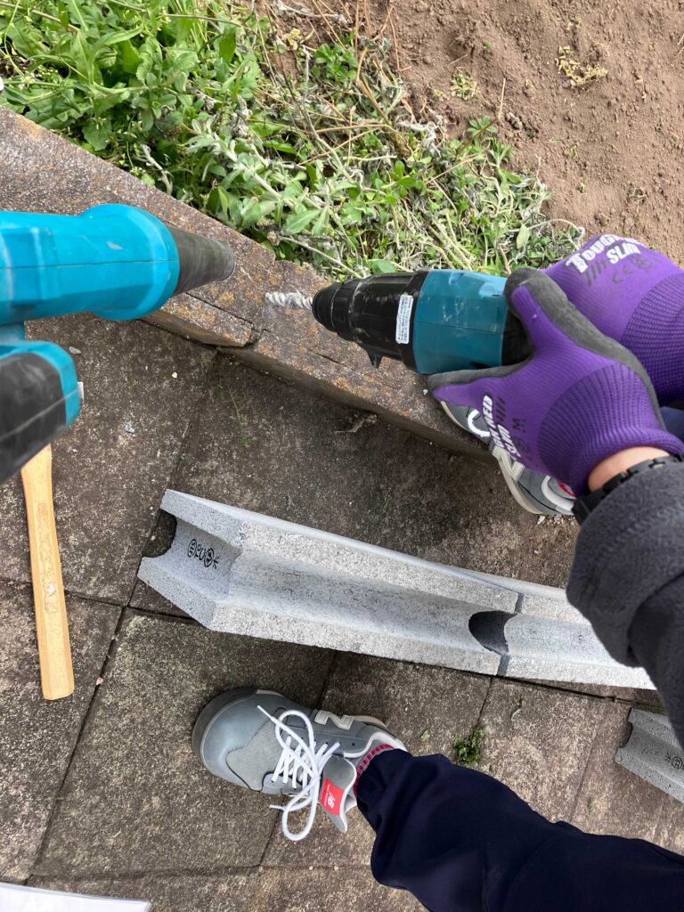 アンカー工事という(鉄筋をブロック上に加える)工事を行います。