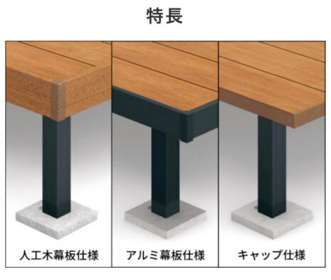 雨や日差しに強く、腐りにくい・シロアリに食べられない・塗装や防腐処理の手間がいらない ため、メンテナンスが非常に楽です。