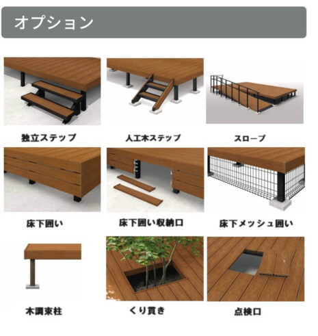その他、デッキ照明やフェンスなども取り付けることができます。