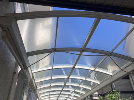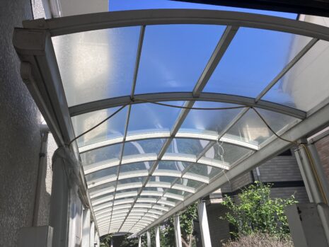 久喜市 病院のアプローチテラス屋根 一時撤去および再設置が完了しました!!