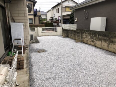 植栽の伐採抜根だけでなく雑草対策の為に6号砕石と防草シートで管理のしやすいすっきりとしたお庭にしました。