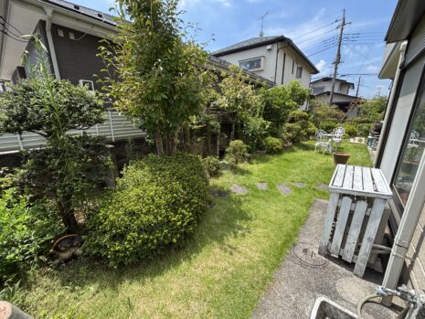 幸手市で外構リフォーム(植栽伐採抜根・天然芝撤去)・雑草対策が完了しました!