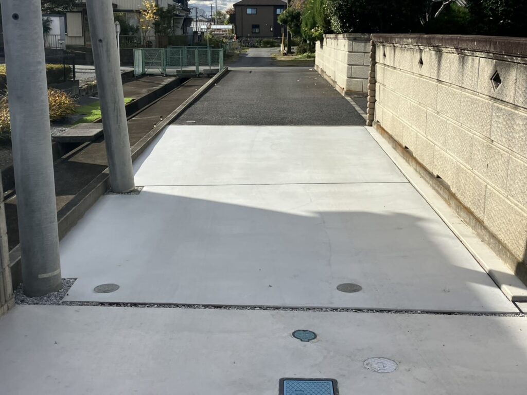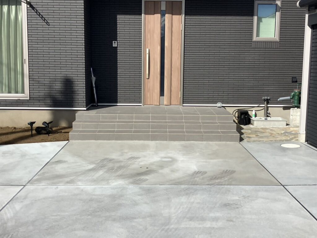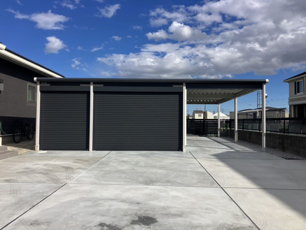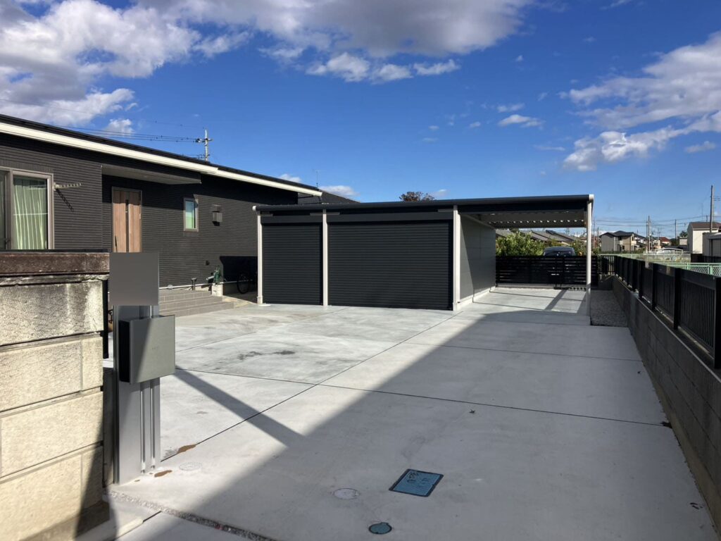 愛車やバイクを保管したり移動させるのにストレスのない新築外構が完成しました。
