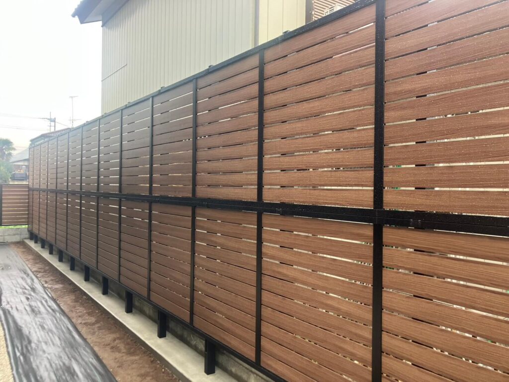 今回は、おしゃれな木調フェンス LIXILのフェンスAB YS型を使用いたしました。