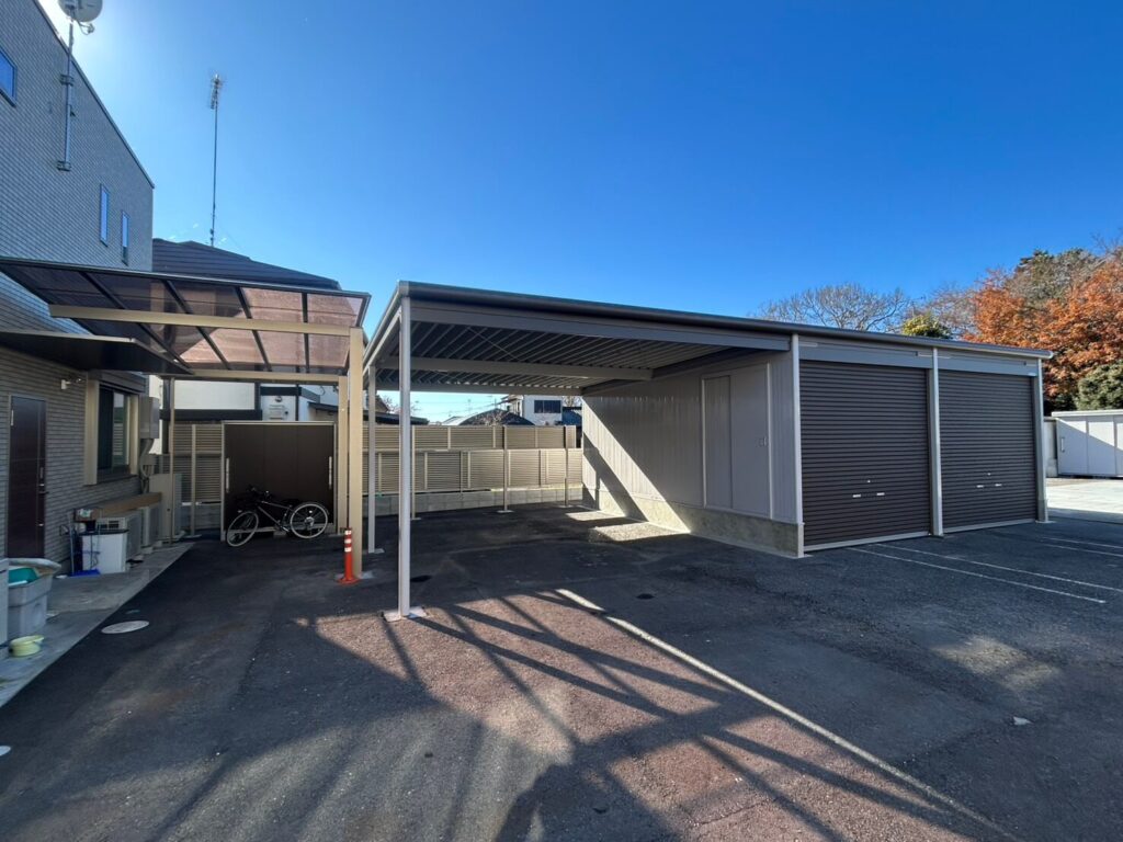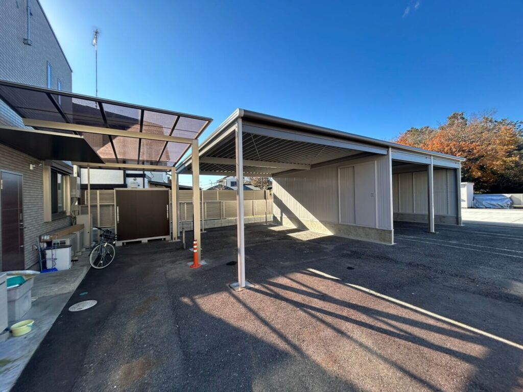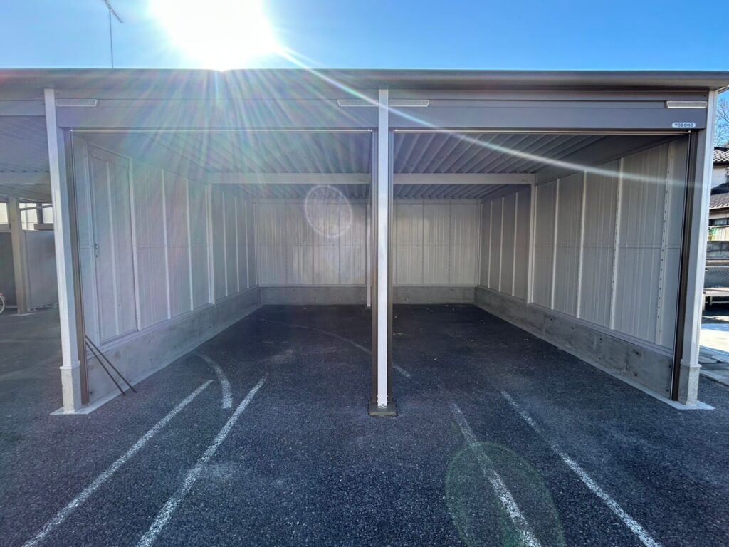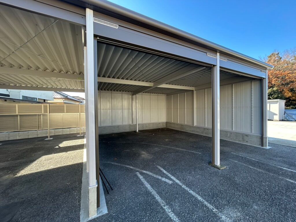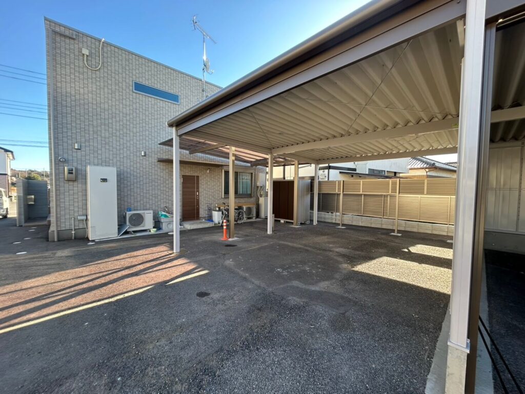 - オープンスペース:屋根があるので、雨の日でも濡れずに乗り降りが可能。日常使いの車や、来客用の駐車スペースとして大活躍します。