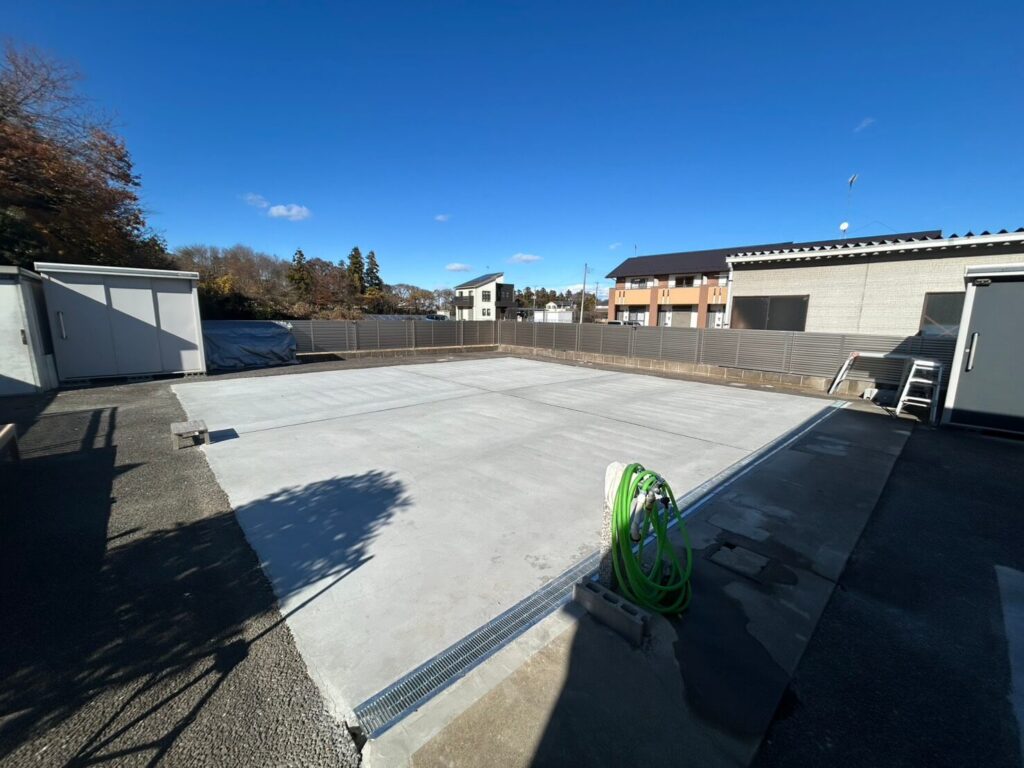 基礎工事やコンクリート養生を含めて、