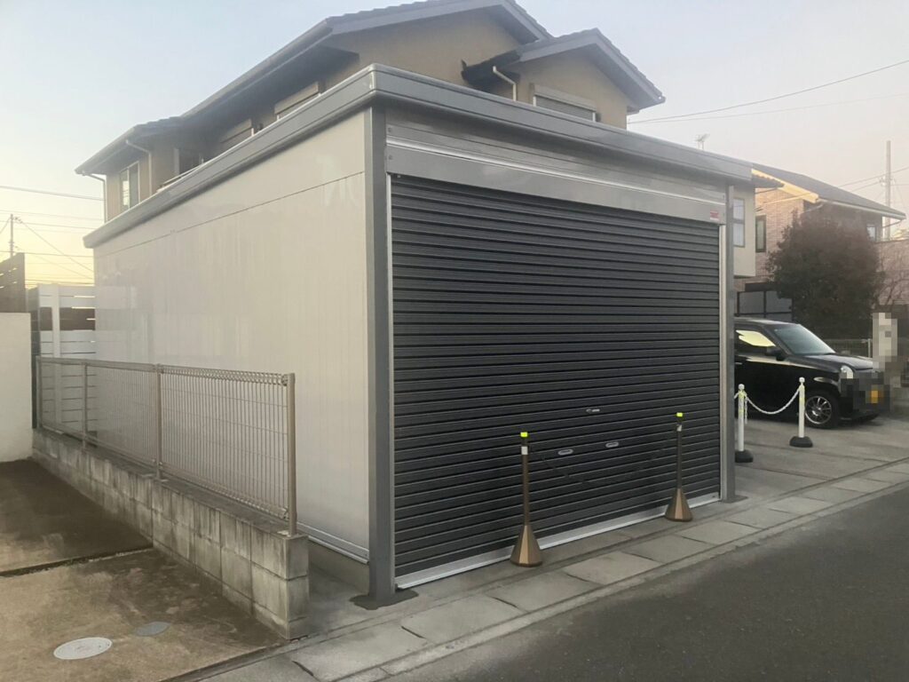 - スムーズな動線確保: 側面に「引き戸」を設置することで、わざわざシャッターを開けなくても、人と荷物の出し入れがスムーズに行えるよう工夫しました 。