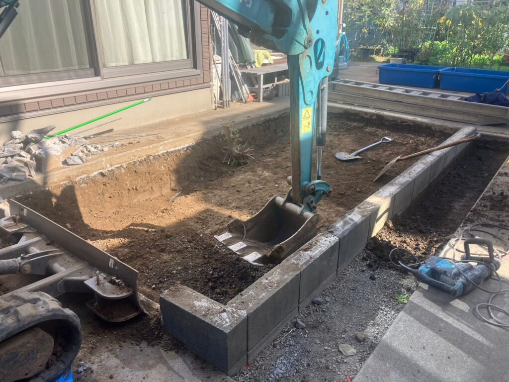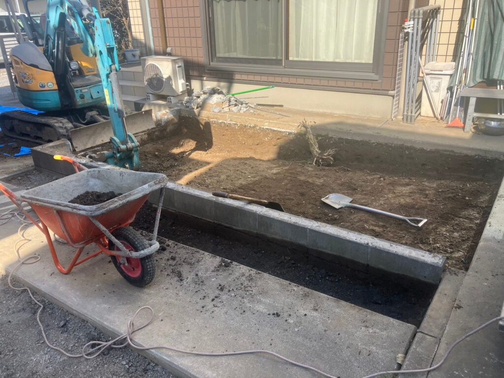 ヒライエクステリア土留めを解体した後に生コンを打設していきました。