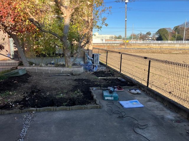 雑草等が生えてくるのは、避けたいとのことでしたので既存の土の部分を