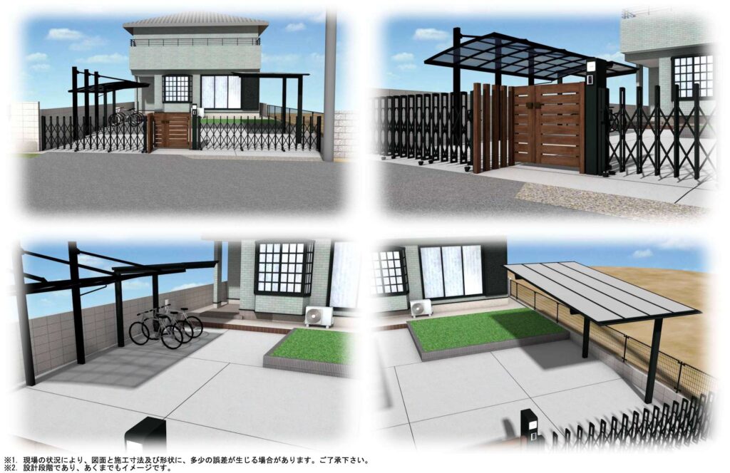 | 門扉 | 片開き・両開き・スライド式の門扉。防犯性とデザイン性を両立。 | |