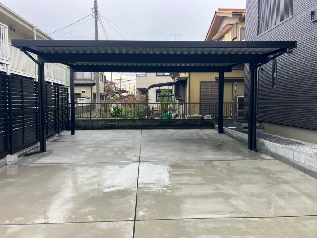 今回は、耐積雪性能の高い折半カーポート G1-Rを使用した新築外構に仕上げました。