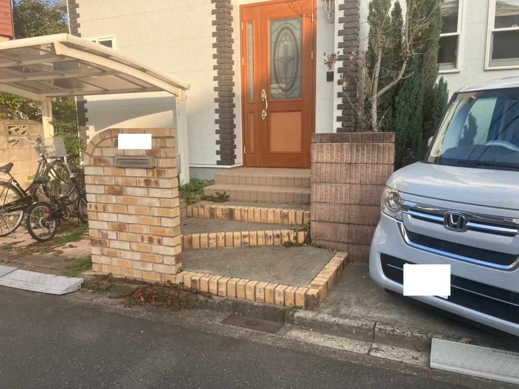 | 解決した悩み | 手入れが大変な植栽や、古くなったアプローチの段差・汚れを一新。機能的でスタイリッシュな玄関周りを実現。 |