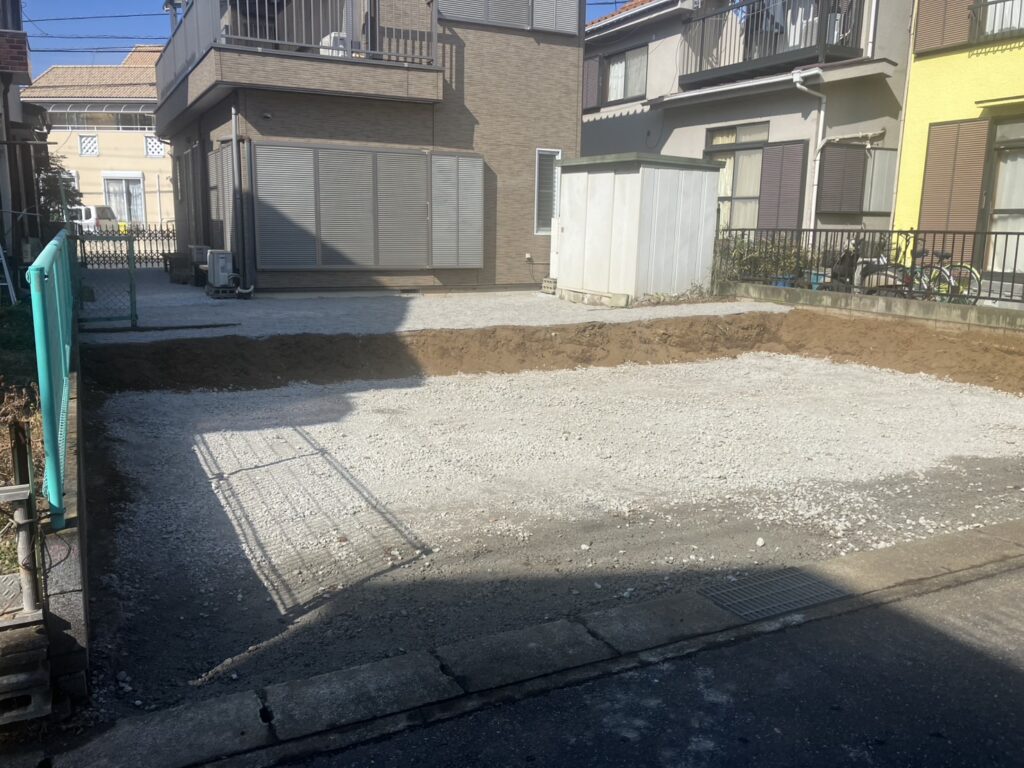 伐採まで完了し本日 土間下地と 人工芝下地 6号が完了しました。