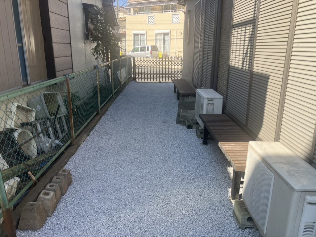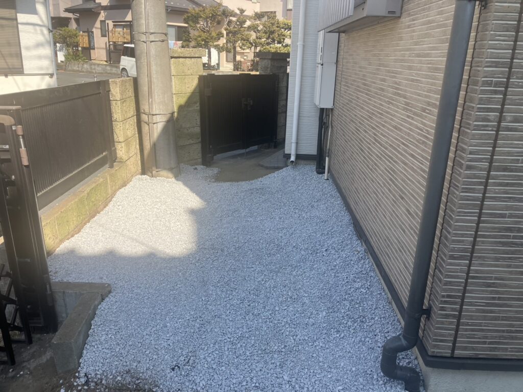 | 砂利敷き | 雑草防止・防犯効果。防草シートと併用される。 | |