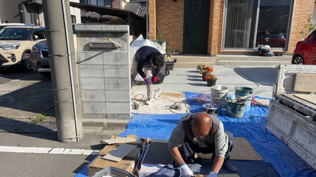 所沢市 y様邸 タイル工事中です。