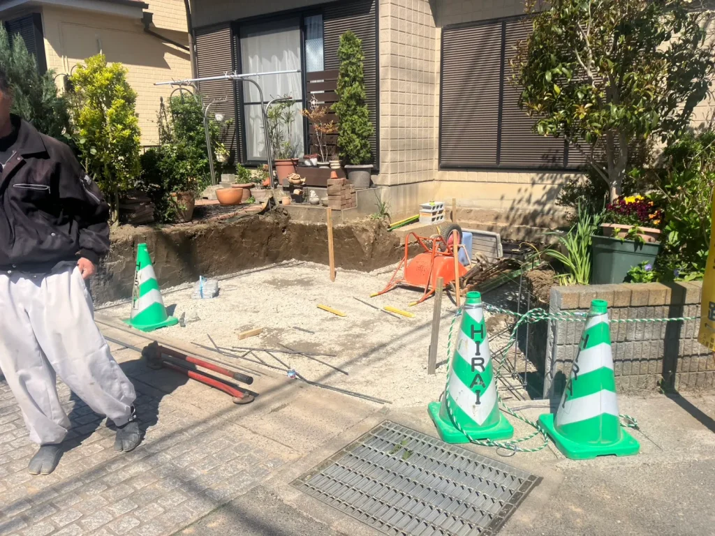 久喜市 駐車場拡張工事 リフォーム外構工事中です。
