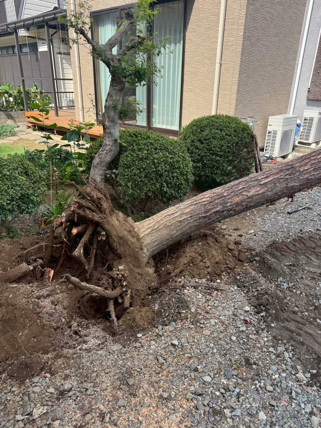 手入れが難しくなった松の木φ30 高さ4m程度のサイズの木を2本 抜根処分