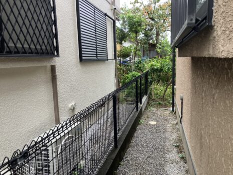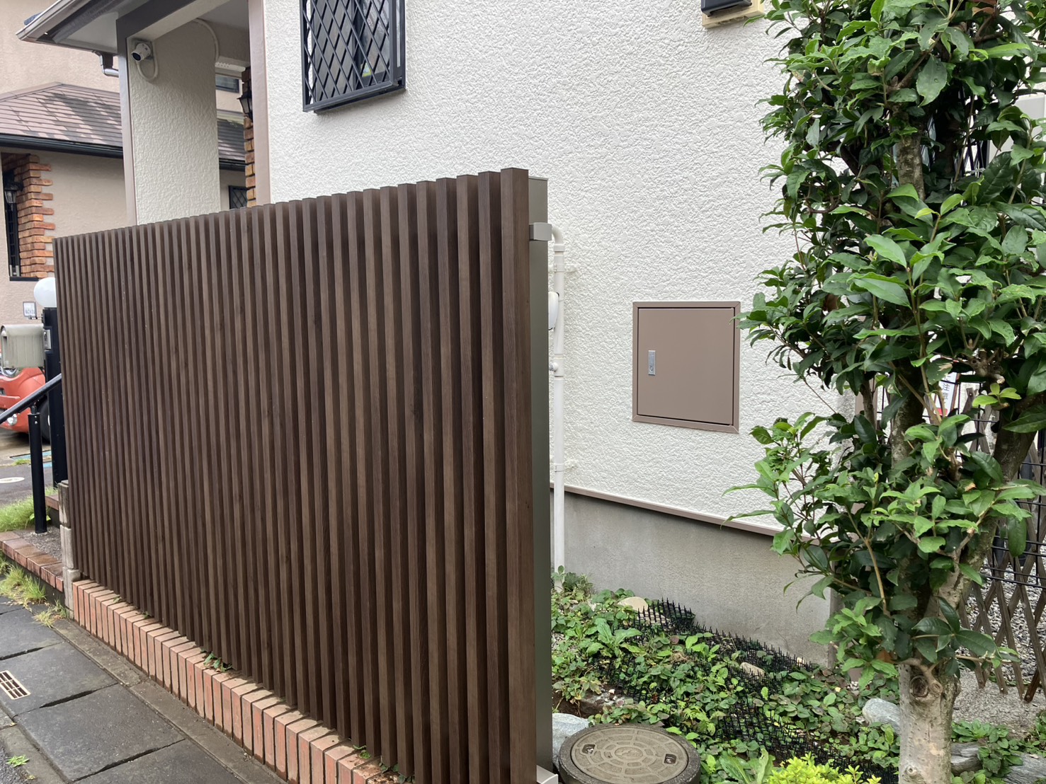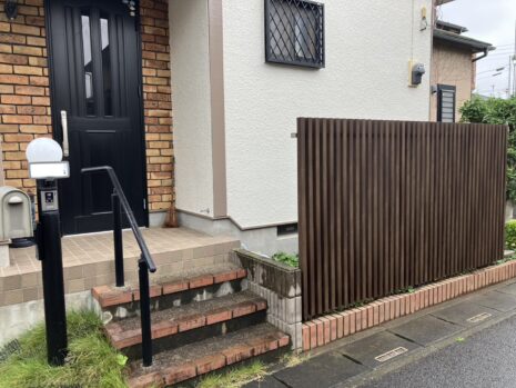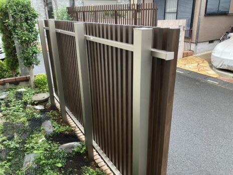 埼玉県北本市で外構リフォーム工事【メッシュフェンス エルファードM1型(縦格子目隠しフェンス)】が完了しました。