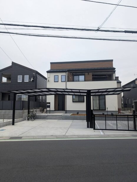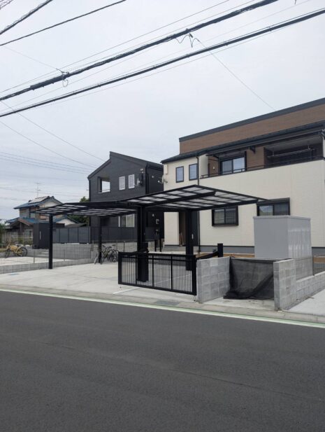 今回は、リフォーム外構で駐車場に三協アルミのカーポート セルフィを施工し