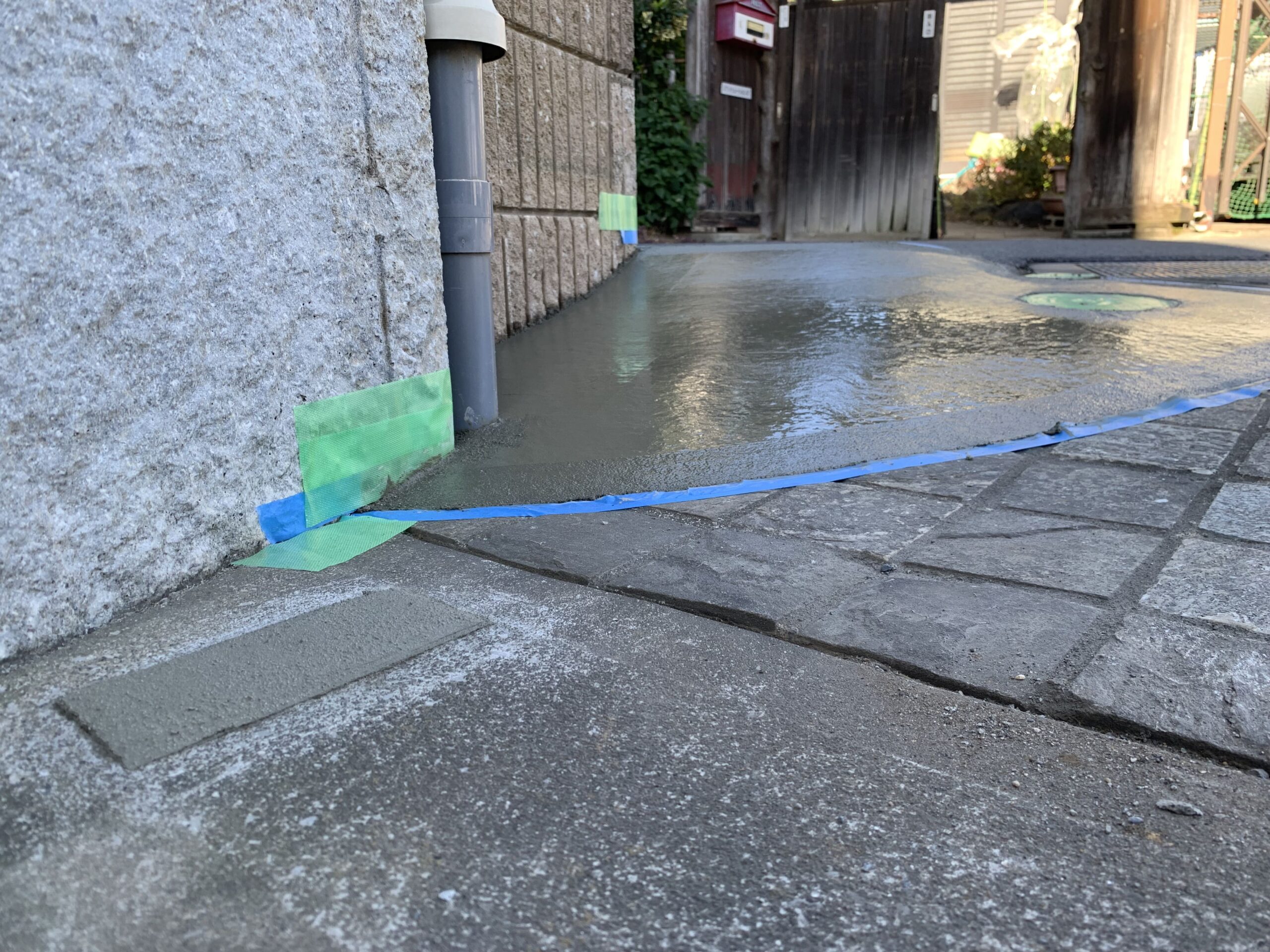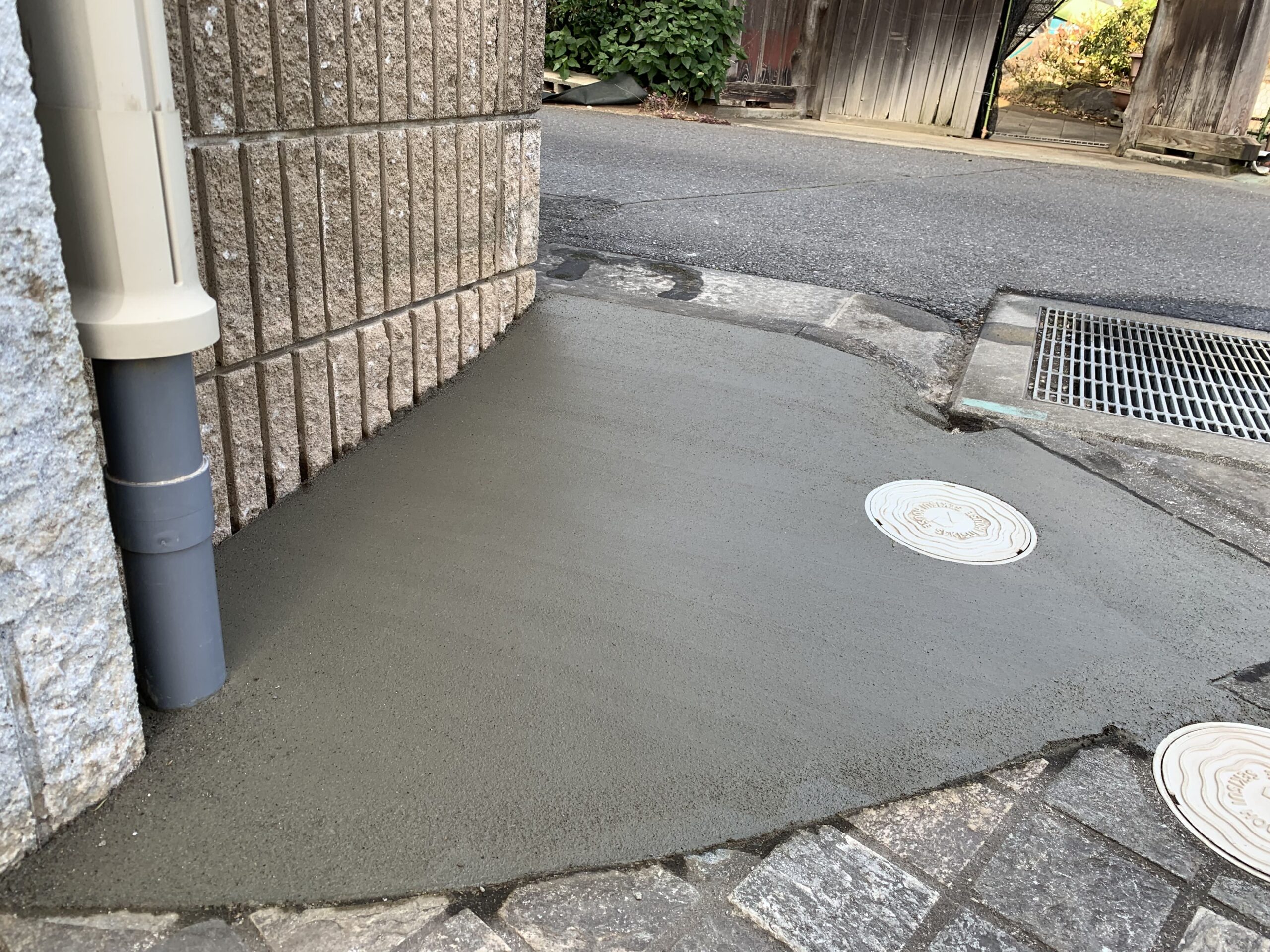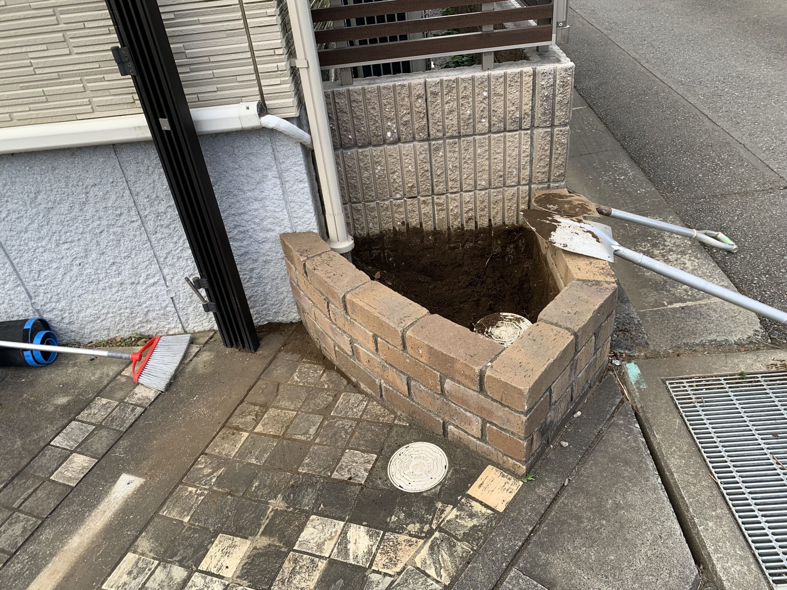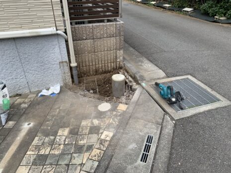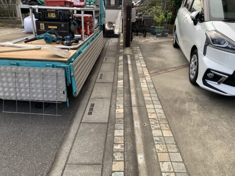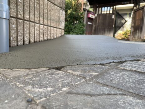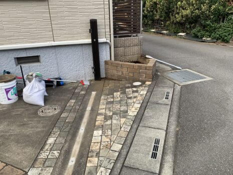 既存の花壇は、解体撤去し駐車場を拡張するために枡調整と土間コンクリート刷毛引き仕上げもあわせて行いました。