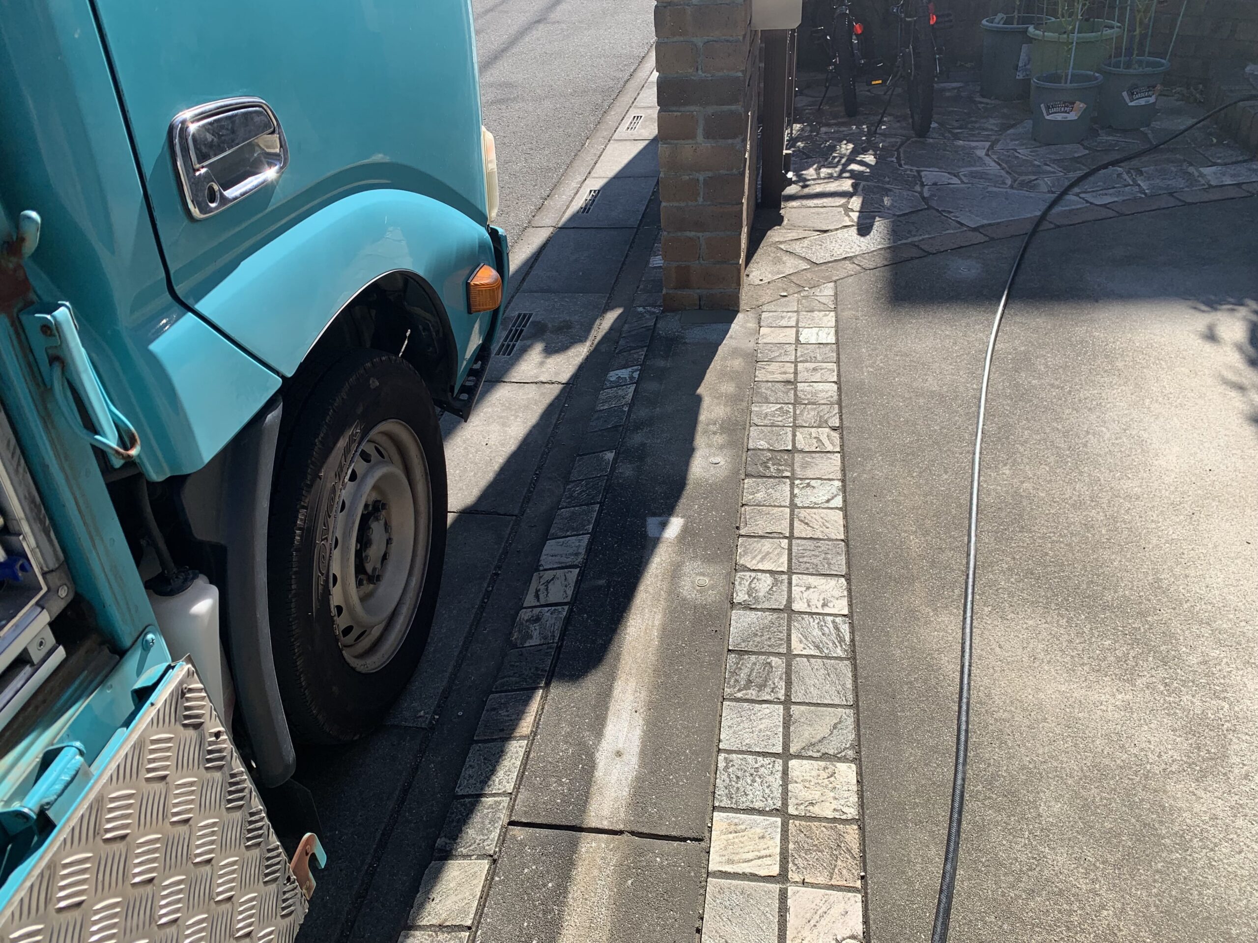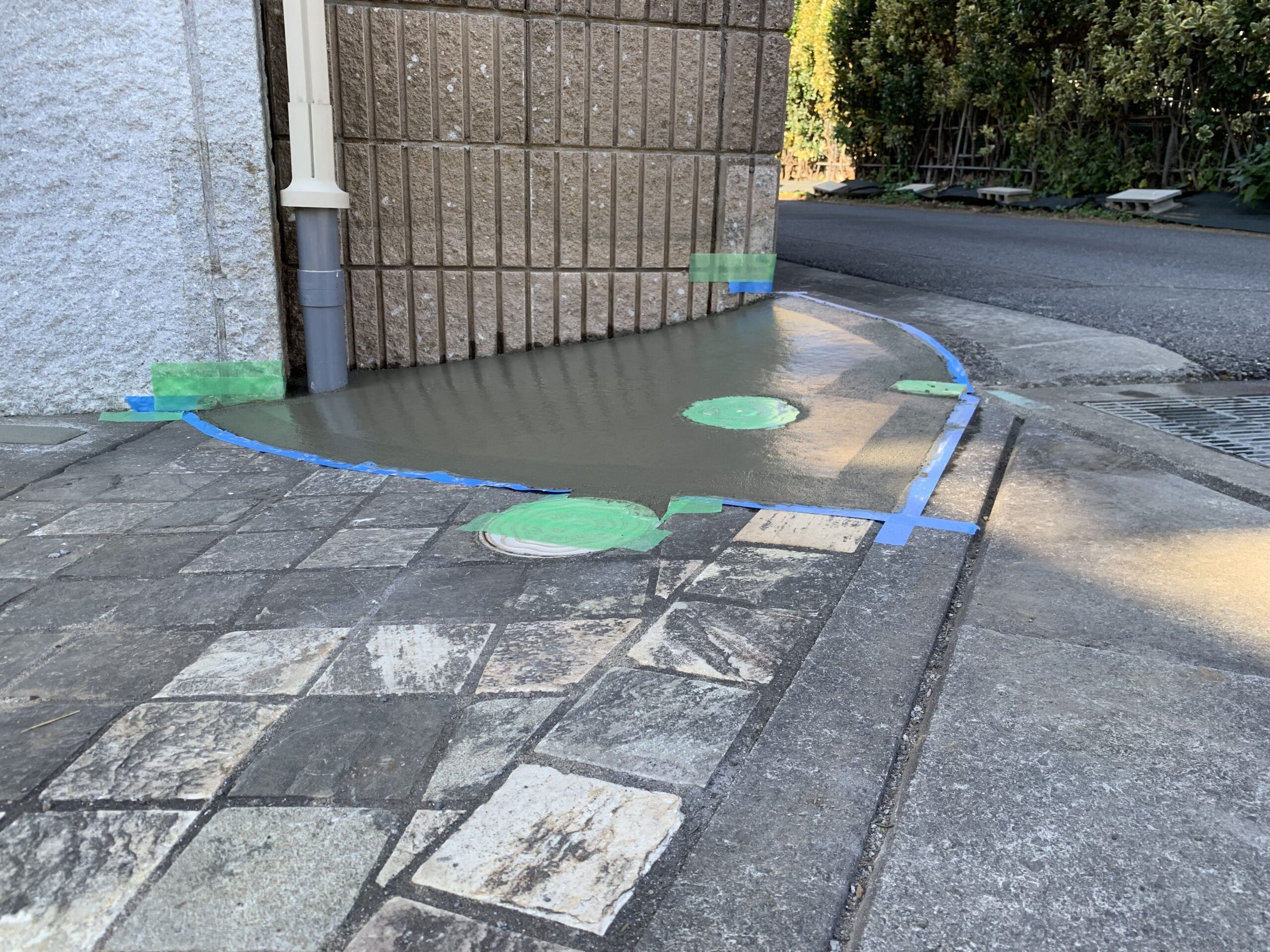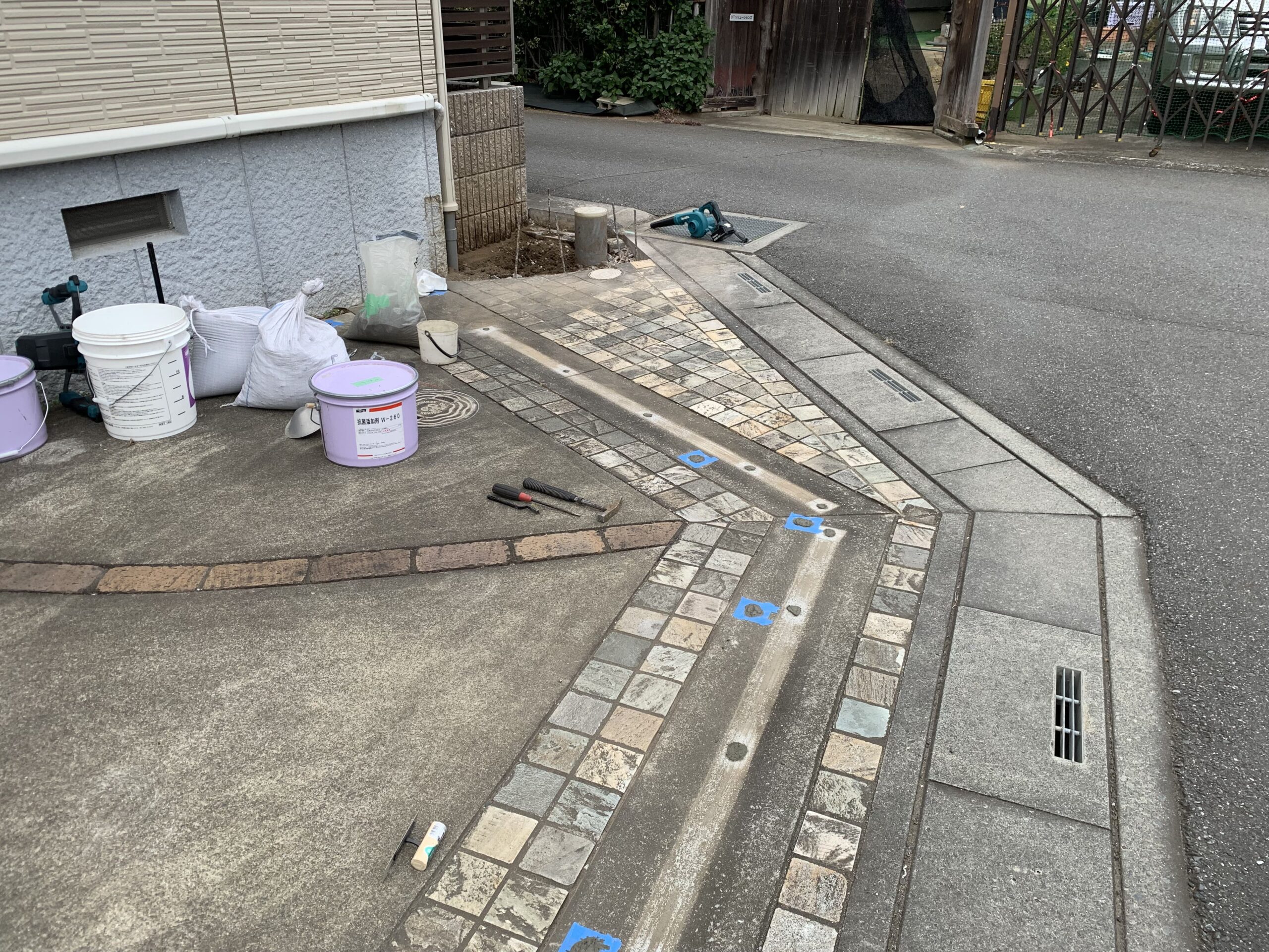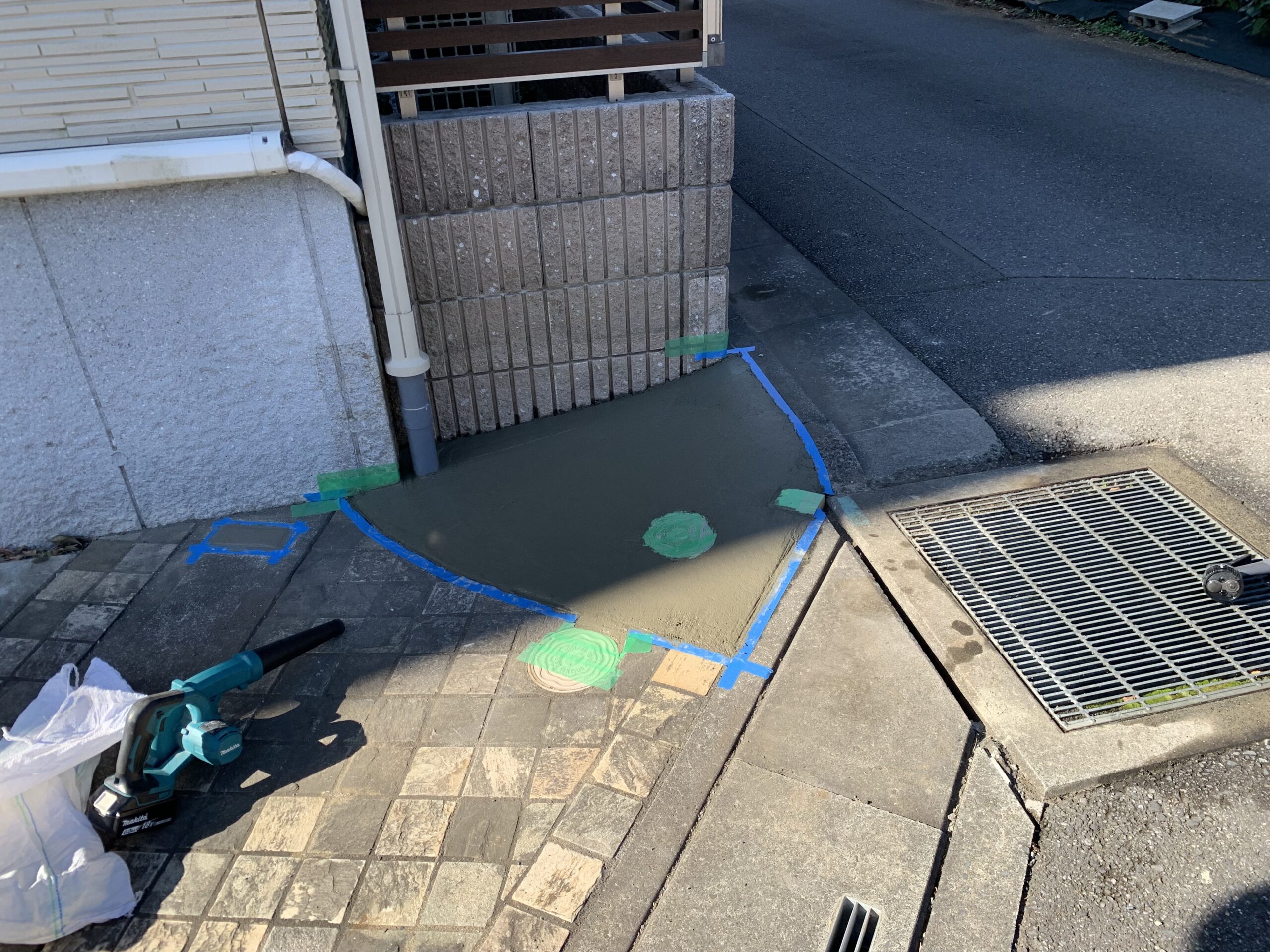 既存の花壇は、解体撤去し駐車場を拡張するために枡調整と土間コンクリート刷毛引き仕上げもあわせて行いました。