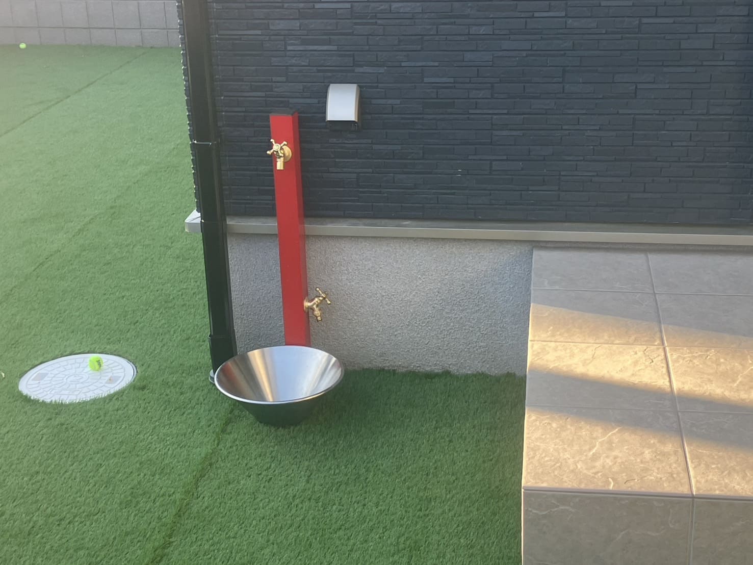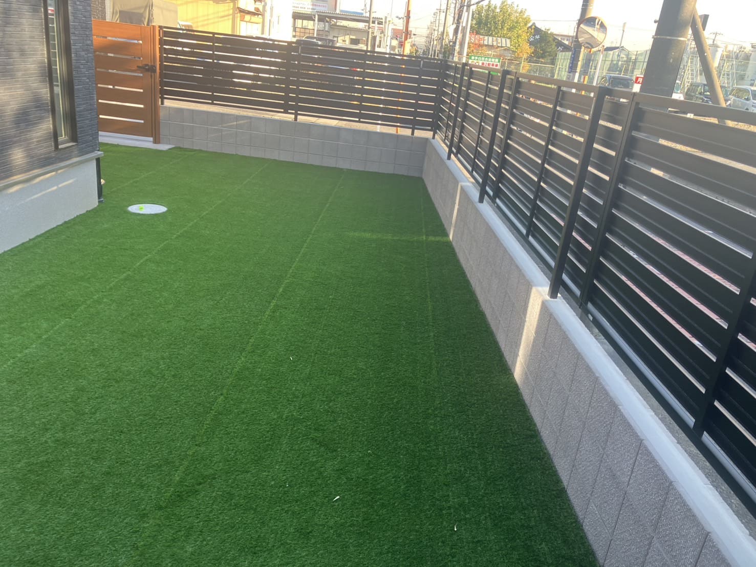 駐車場は、広めにとり、ペットが自由に遊べる人工芝と目隠しフェンスのプライベート空間を演出したお庭も作成しました。