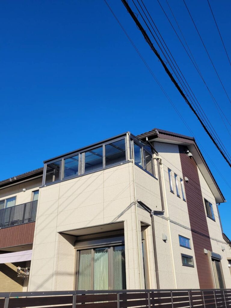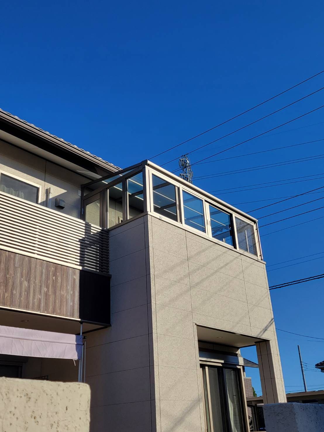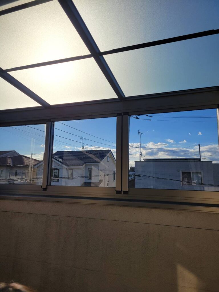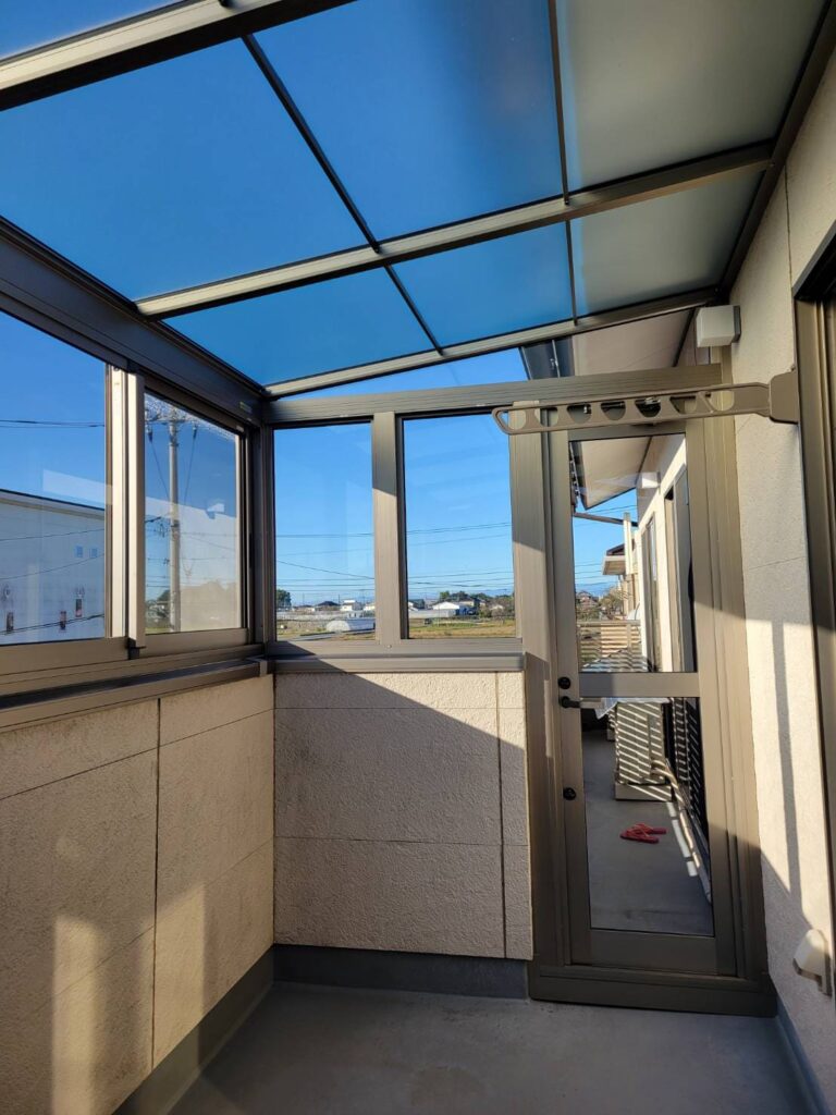 久喜市で2階バルコニーに三協アルミの テラス囲い 晴れもようwithの施工が完了しました。