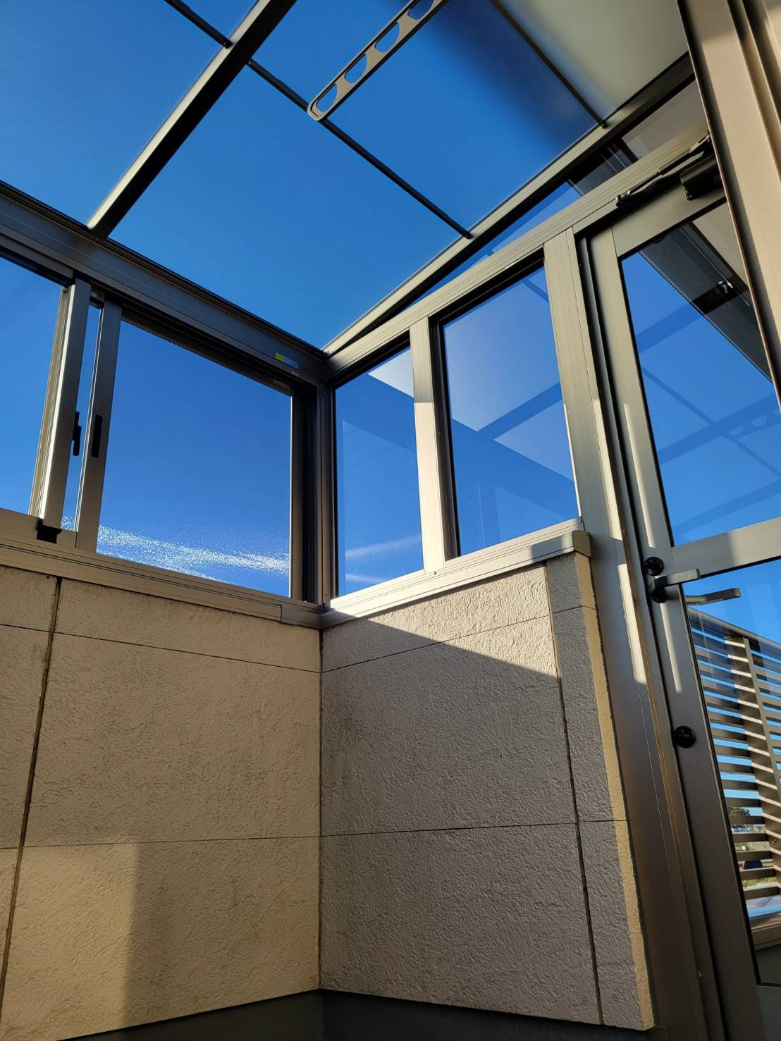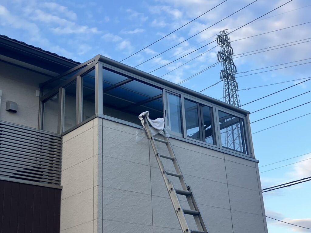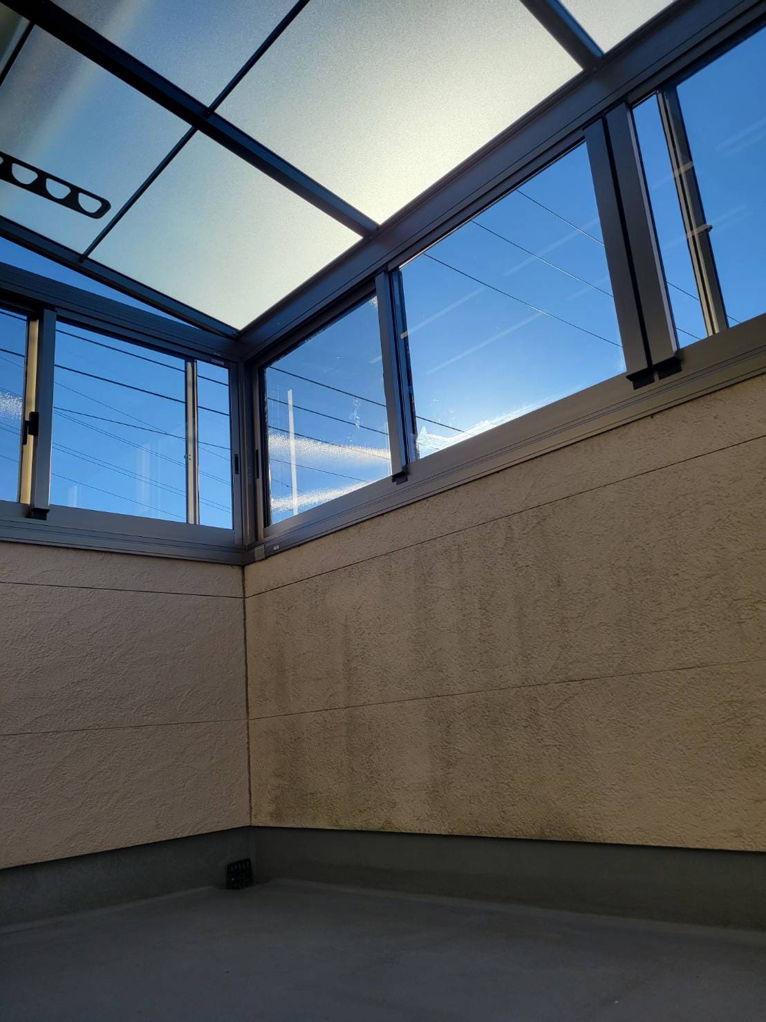 久喜市で2階バルコニーに三協アルミの テラス囲い 晴れもようwithの施工が完了しました。