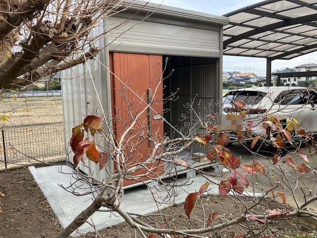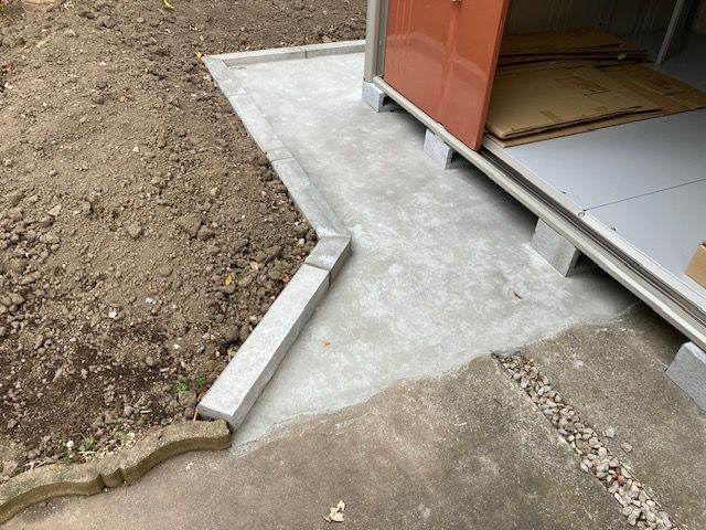 一部土間コンクリートに変更してそこに田窪物置 Mr.トールマン ダンディを施工しました。