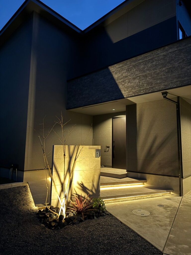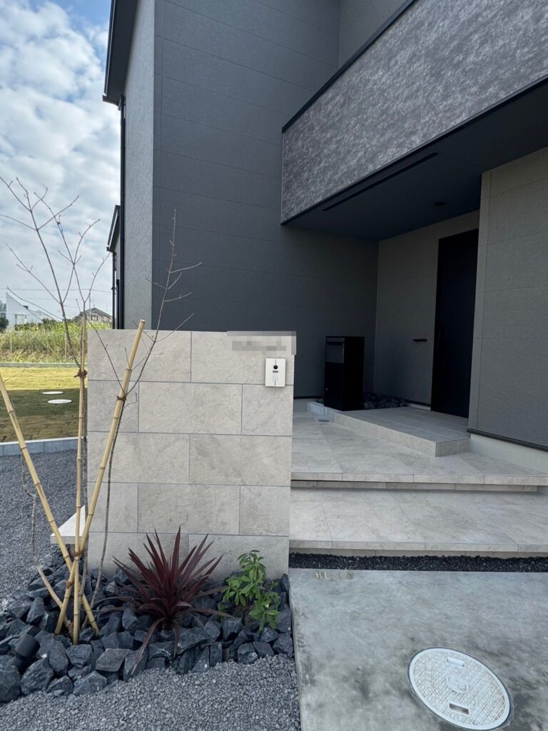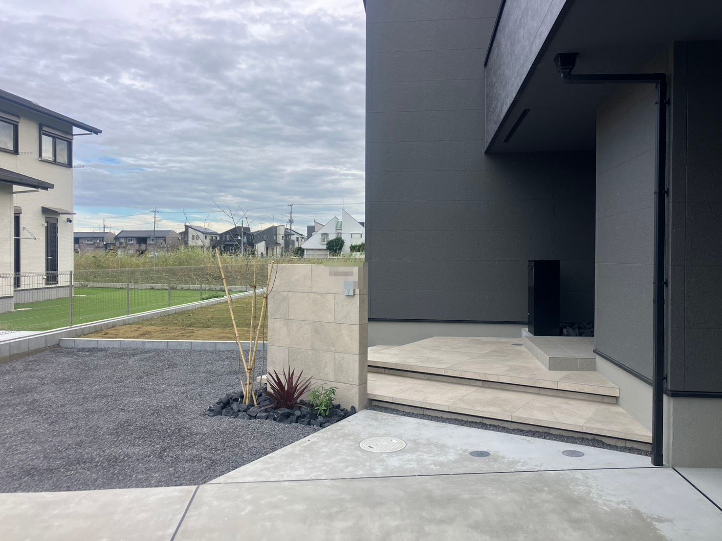 最近人気の浮遊階段を使用した高級感のある新築外構に仕上げました。