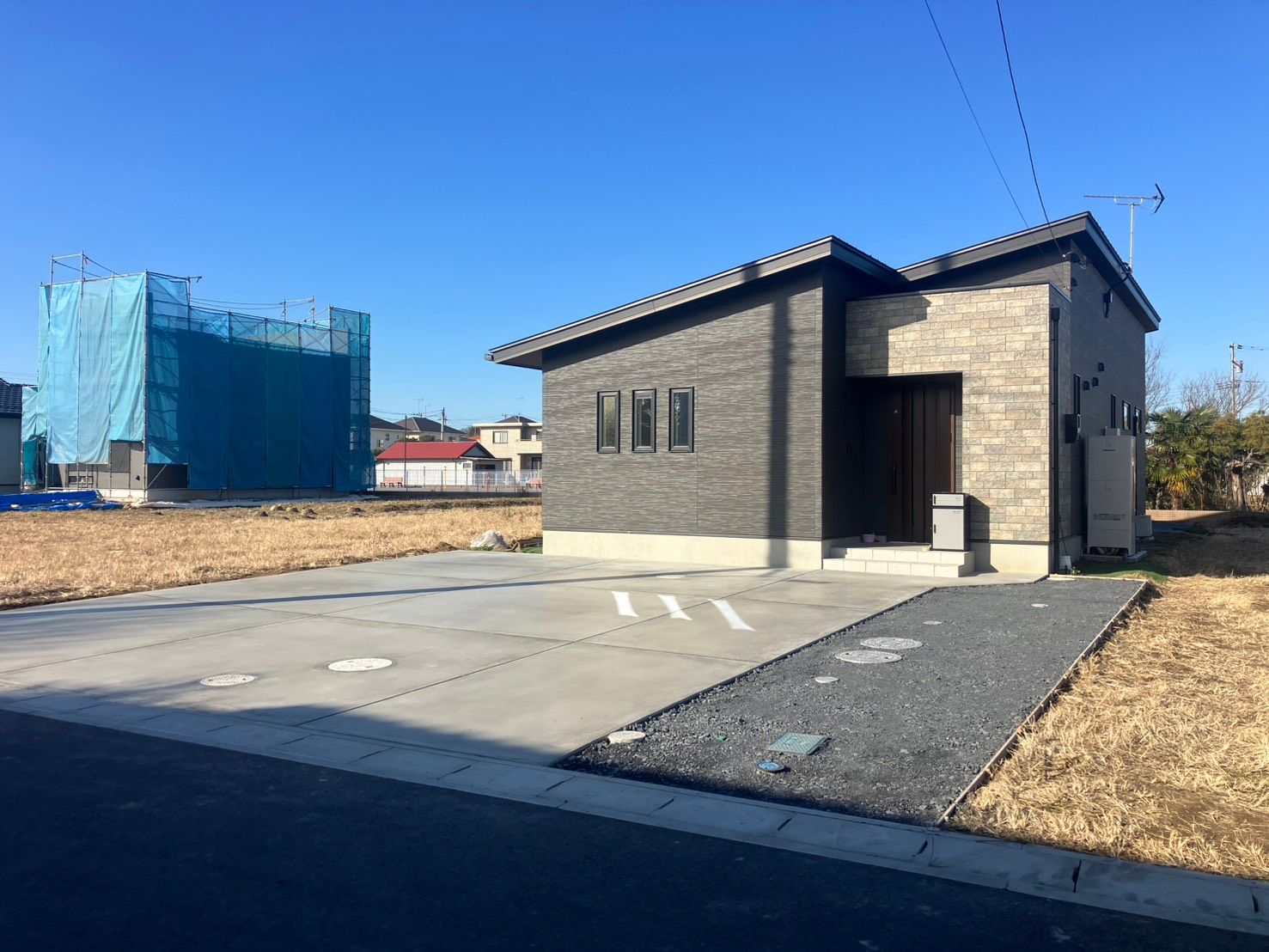 加須市でシンプルなオープン新築外構工事が完了しました。