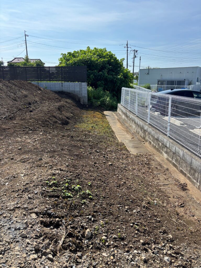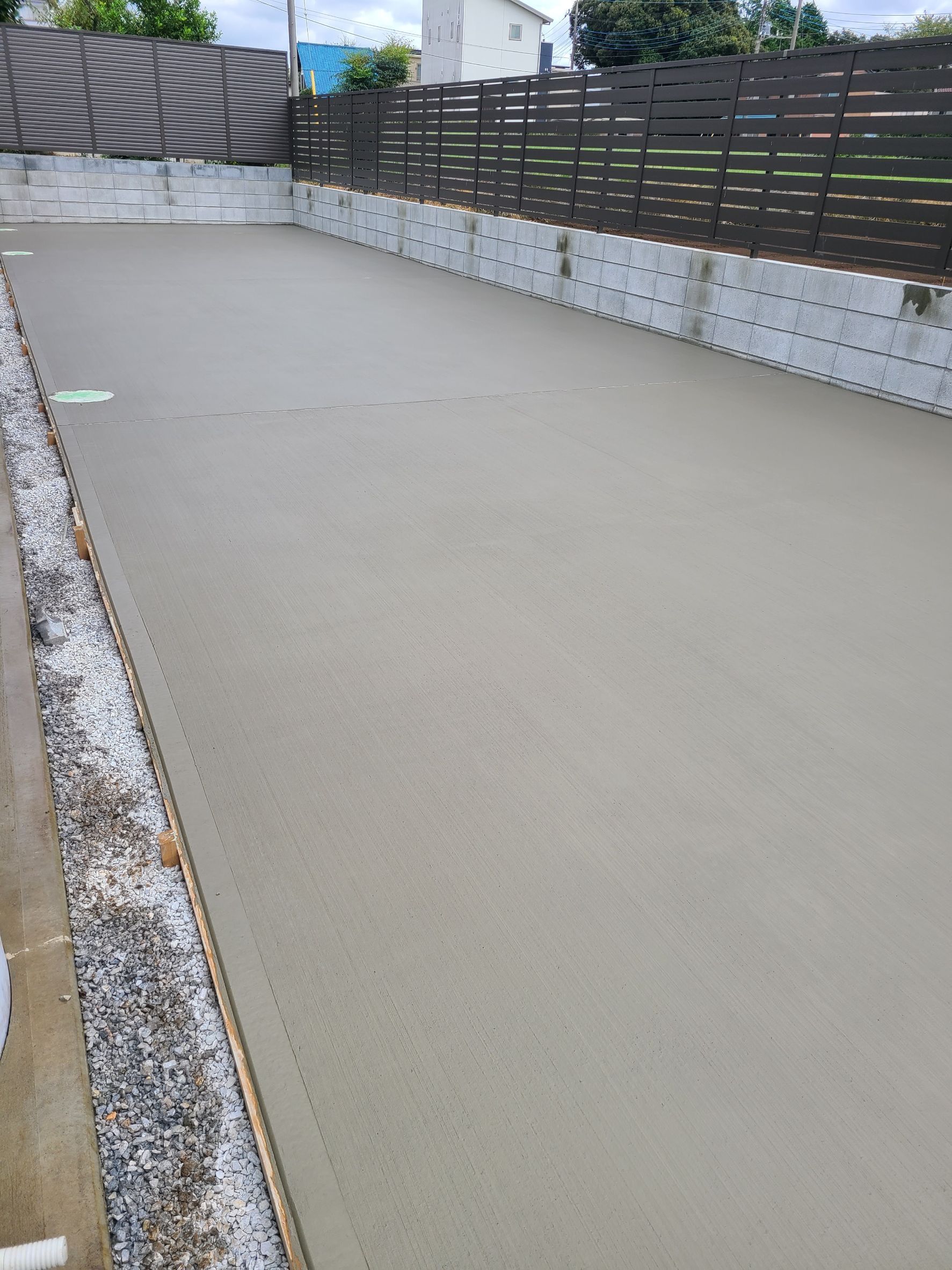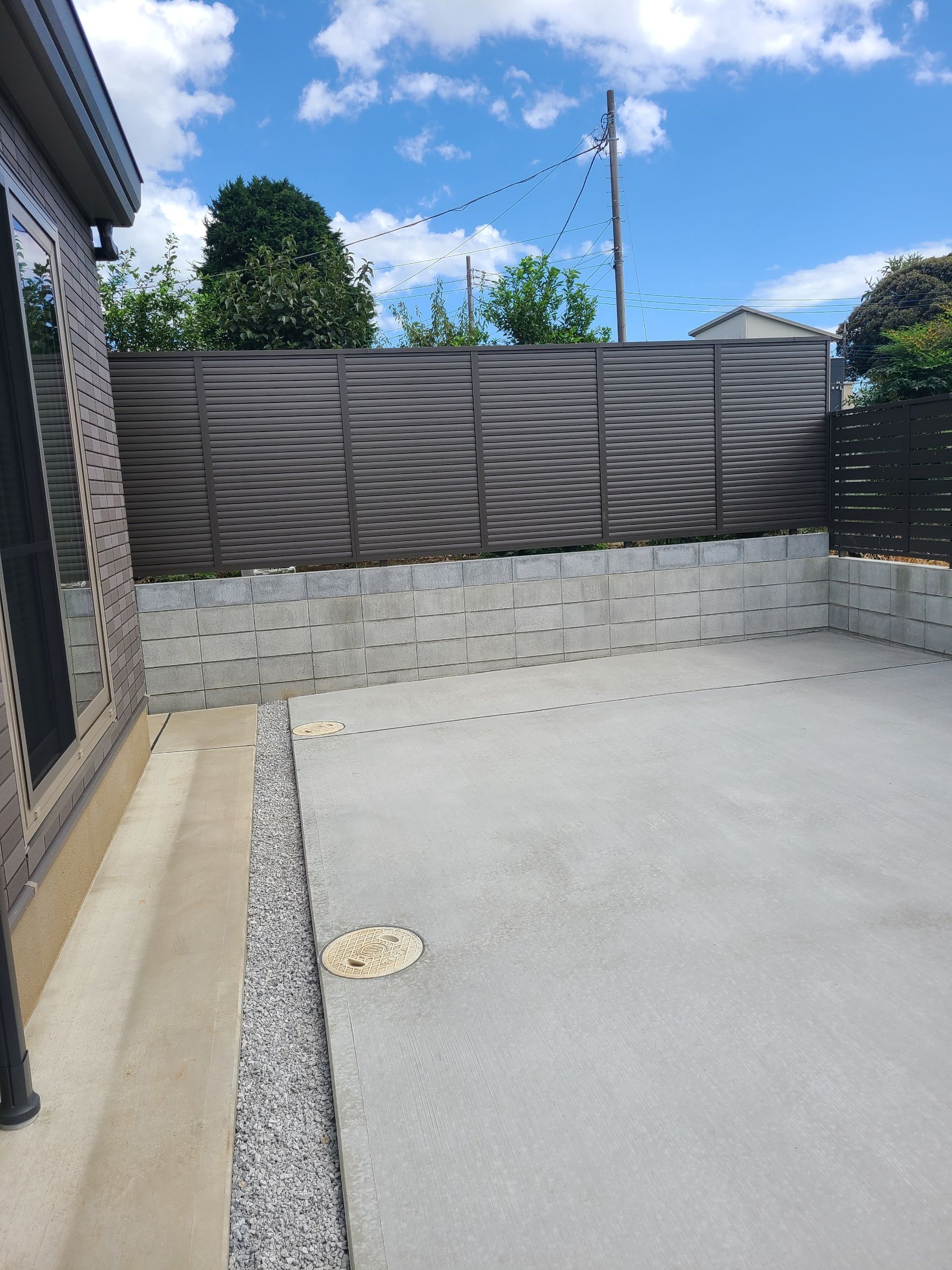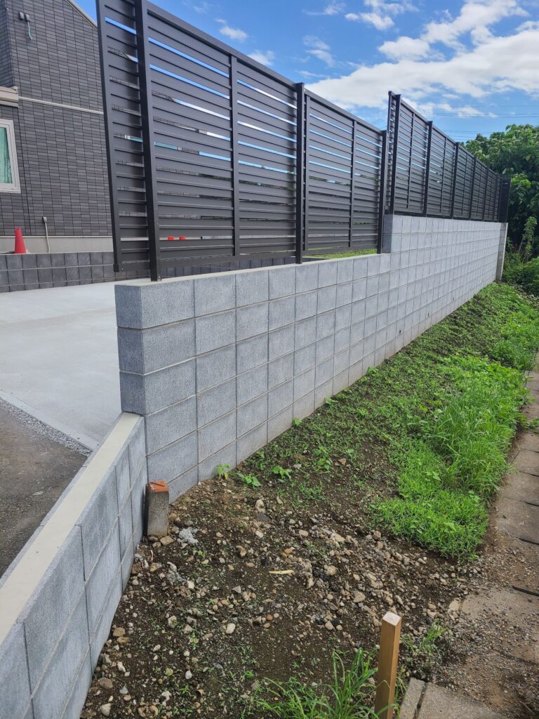 その後土間コンクリート・ブロック工事・目隠しフェンス工事【LIXIL フェンスAB YL3型】を行いました。