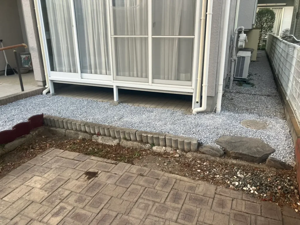 今回は、埼玉県幸手市で生い茂った植木や芝生をすべて撤去し、メンテナンスの手間をゼロに近づけた、外構リフォームを行いました。