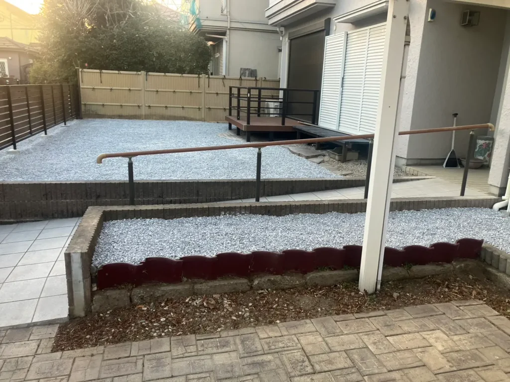 埼玉県幸手市 「庭じまい」植木伐採と砂利敷き・目隠しフェンスで劇的ビフォーアフター No.2741