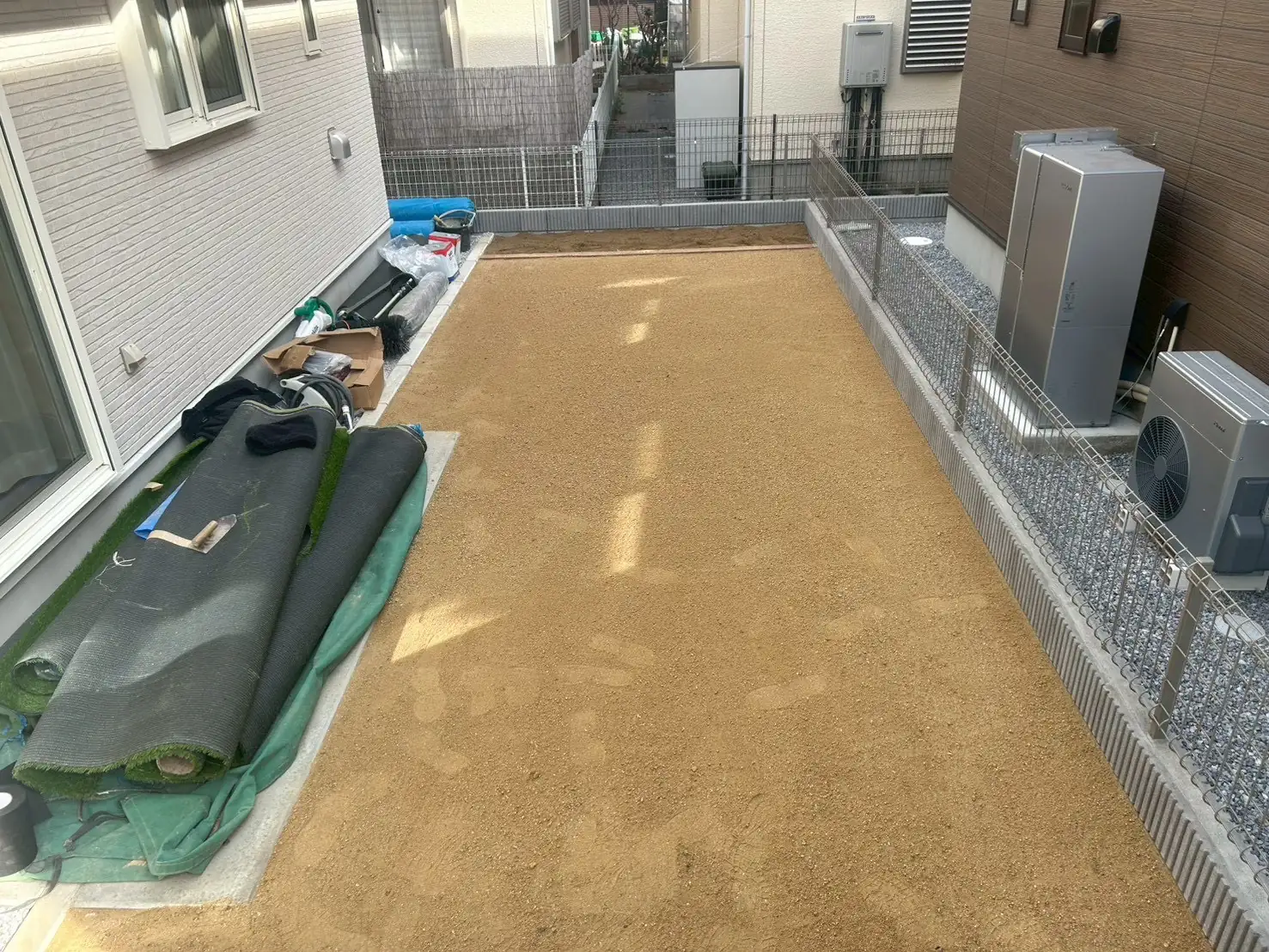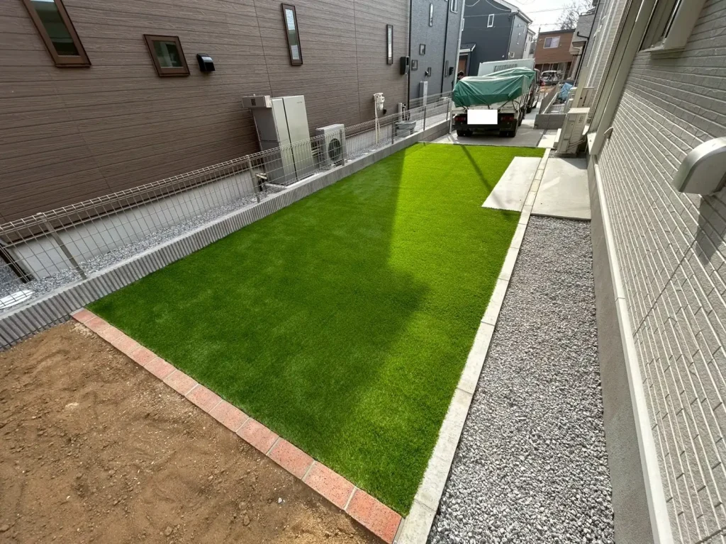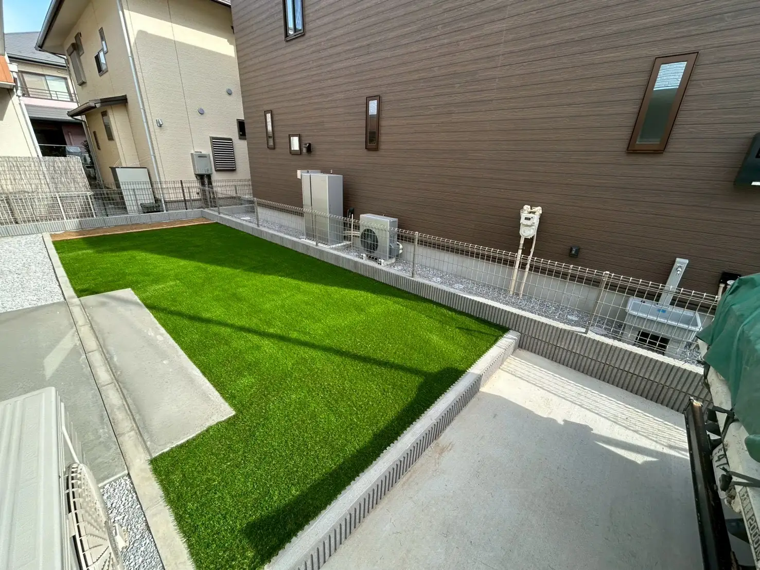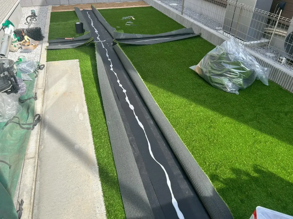 今回は、先に仕上がった人工芝の部分前の施工事例をご紹介いたします。