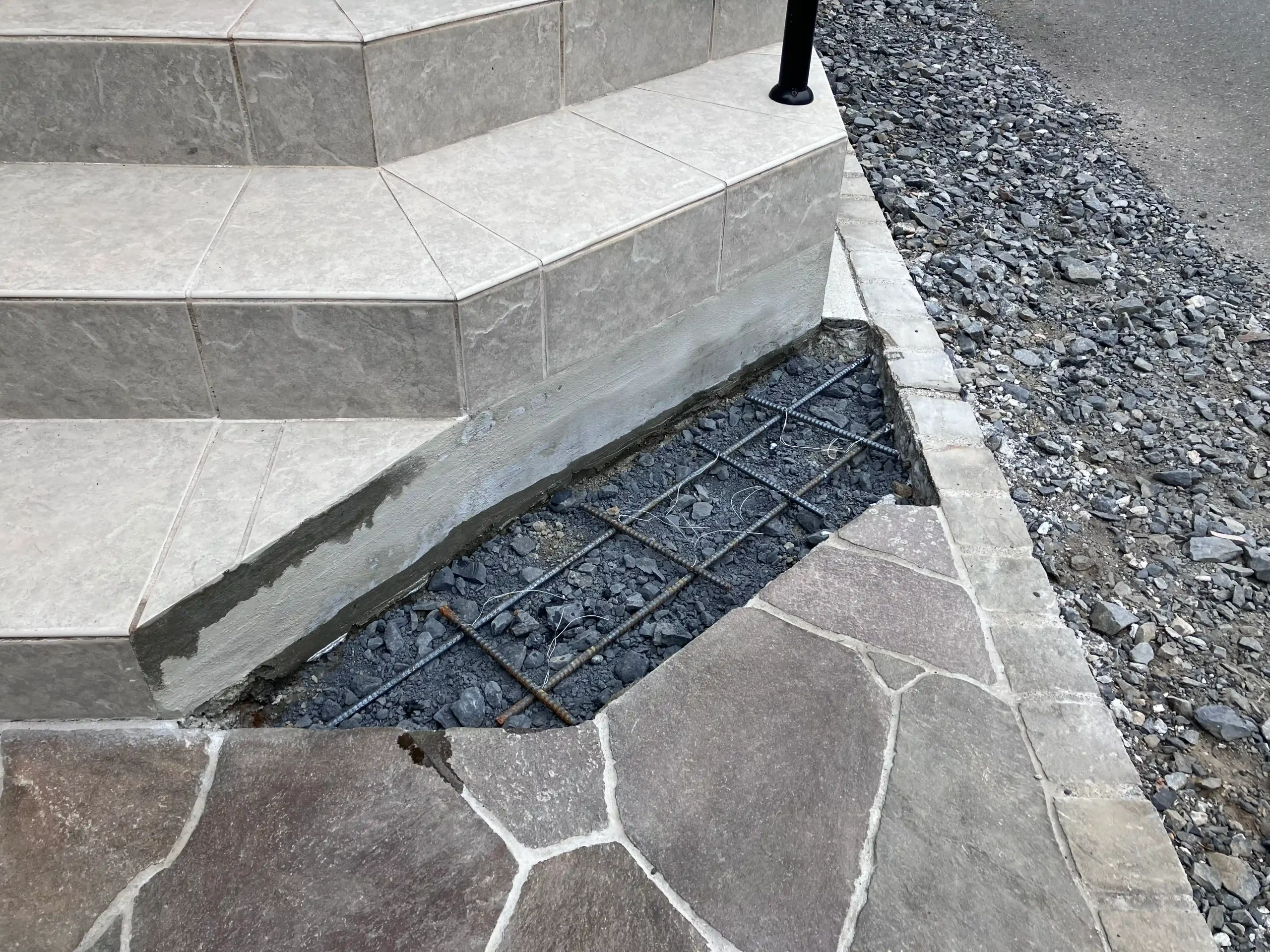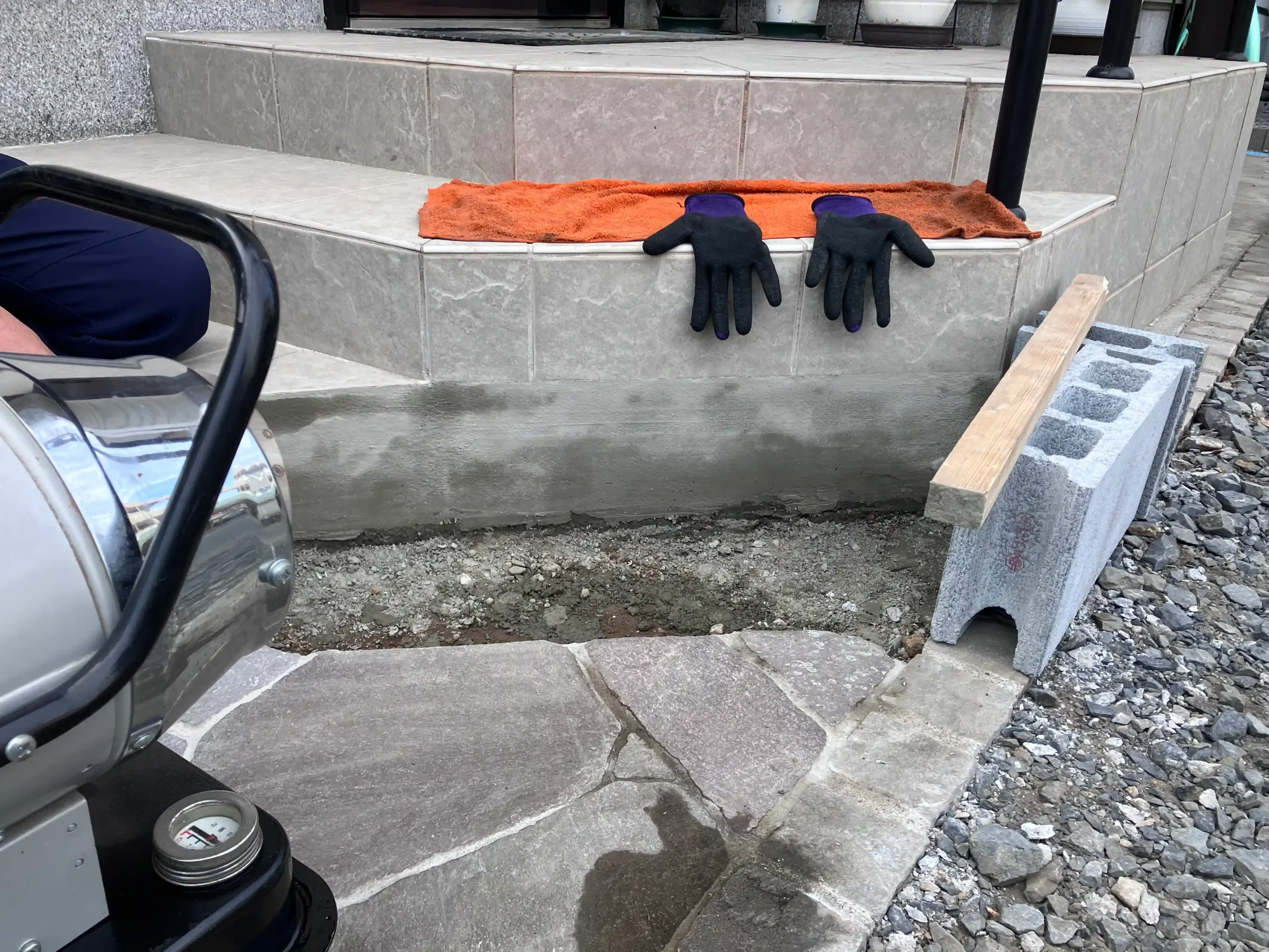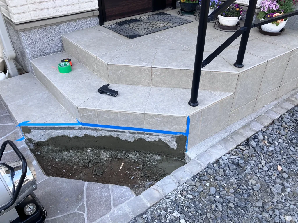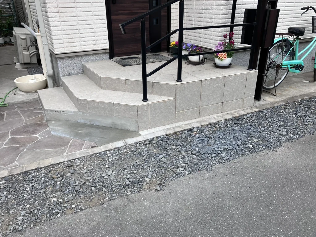 | 主な使用工法 | 既存ステップ解体、立ち上がりモルタル仕上げ・床面土間コンクリート |
