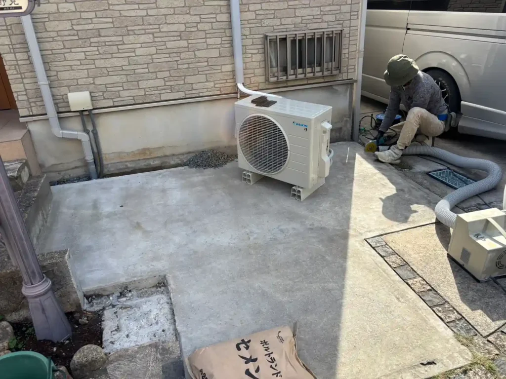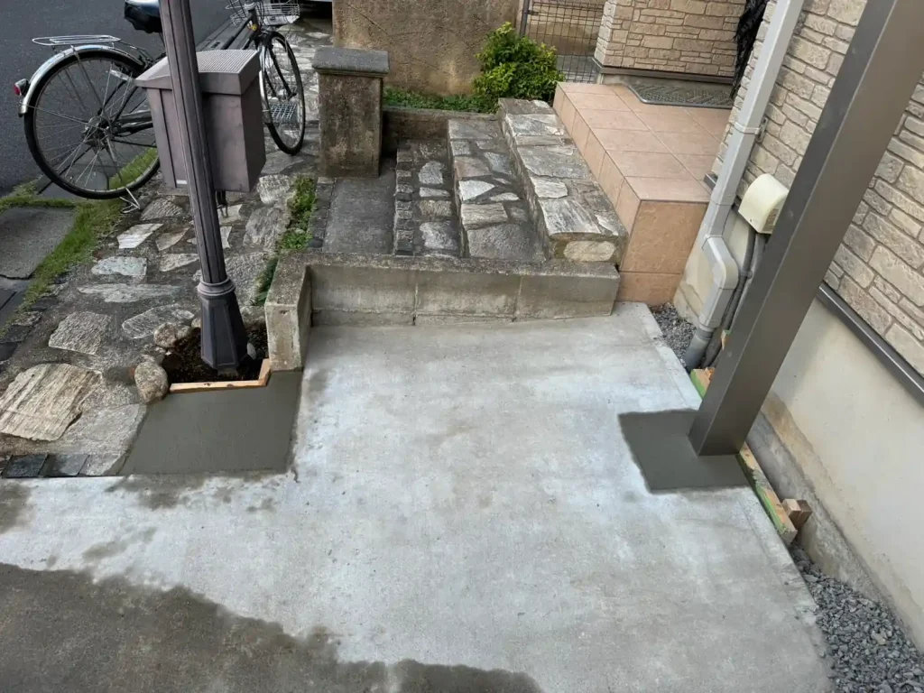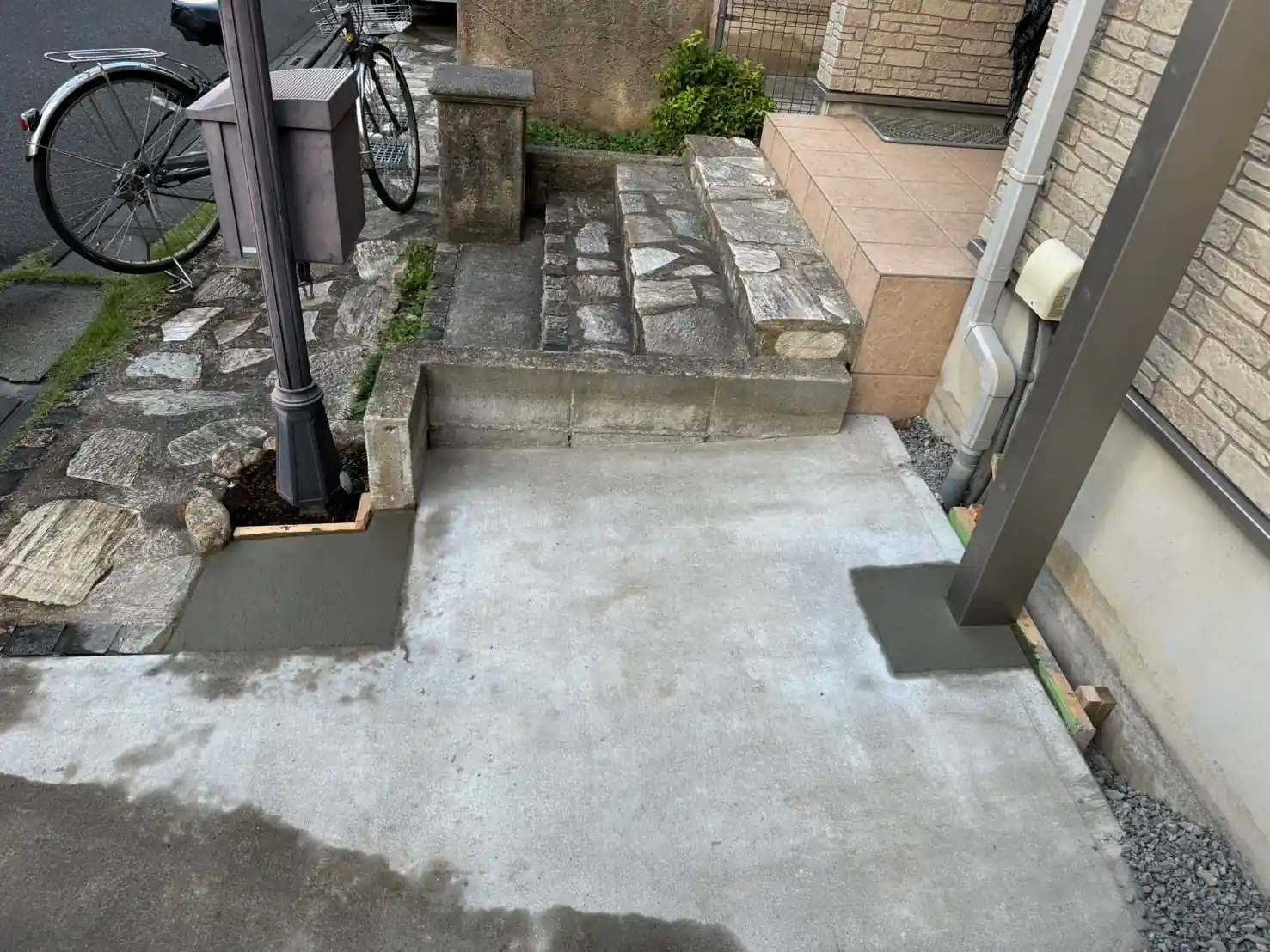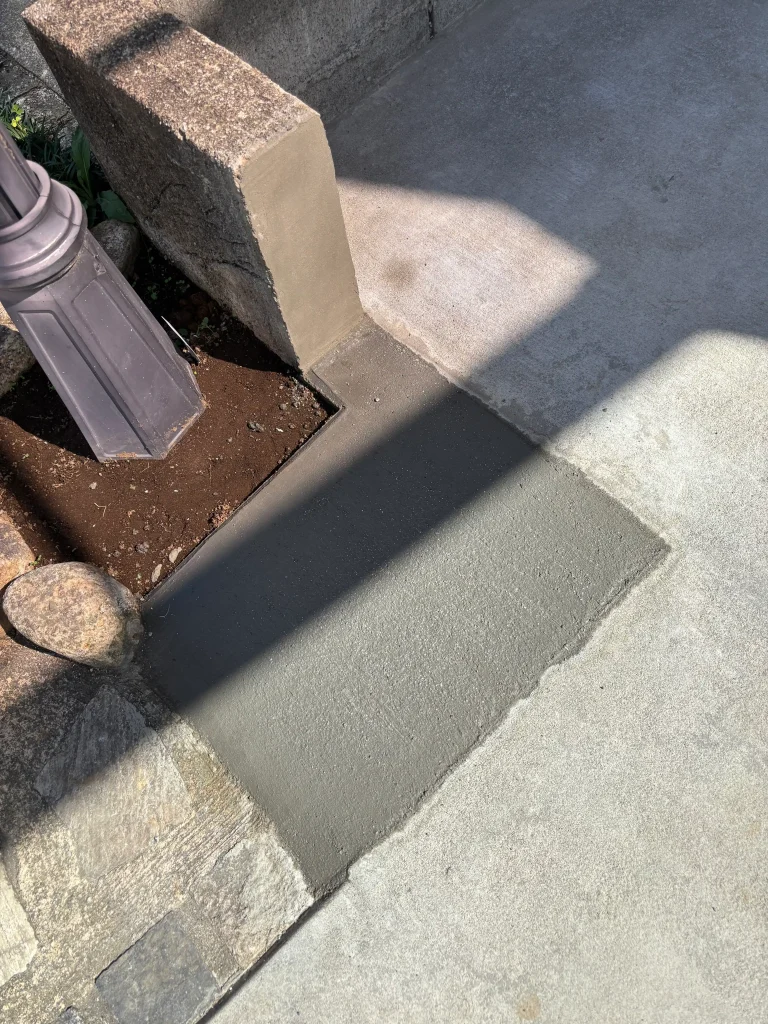 モルタル仕上げを柱部分は、行っておりますが既存の土間の色と色味が変わることは説明を行なっております。