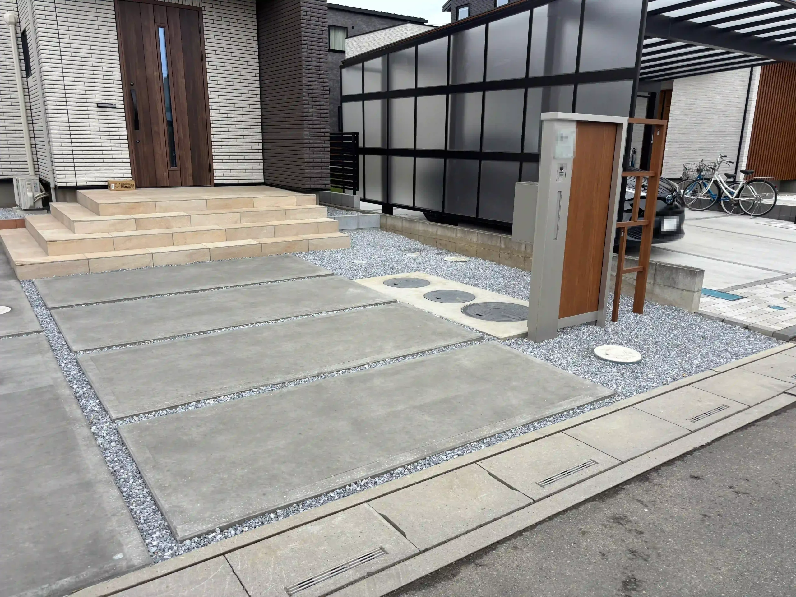 ヒライエクステリアお客様の新築におけるお悩みや要望を含めた新築外構工事を行いました。