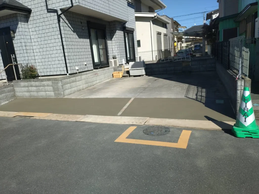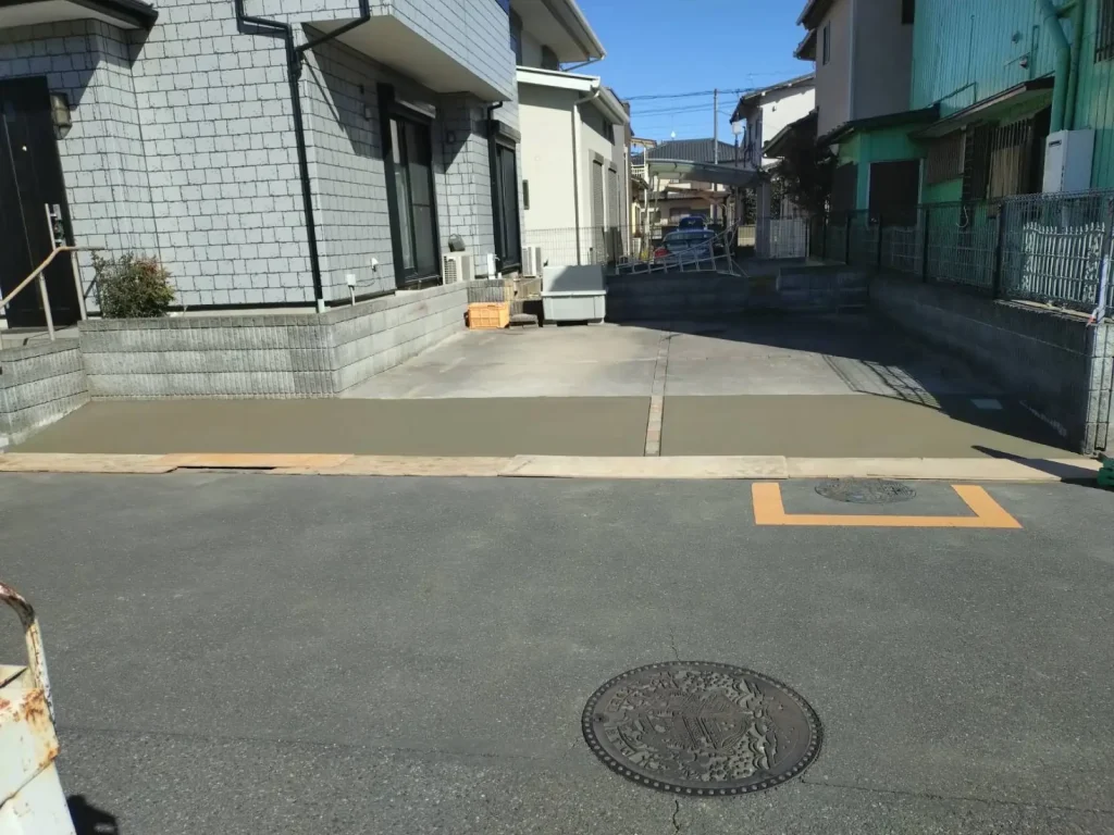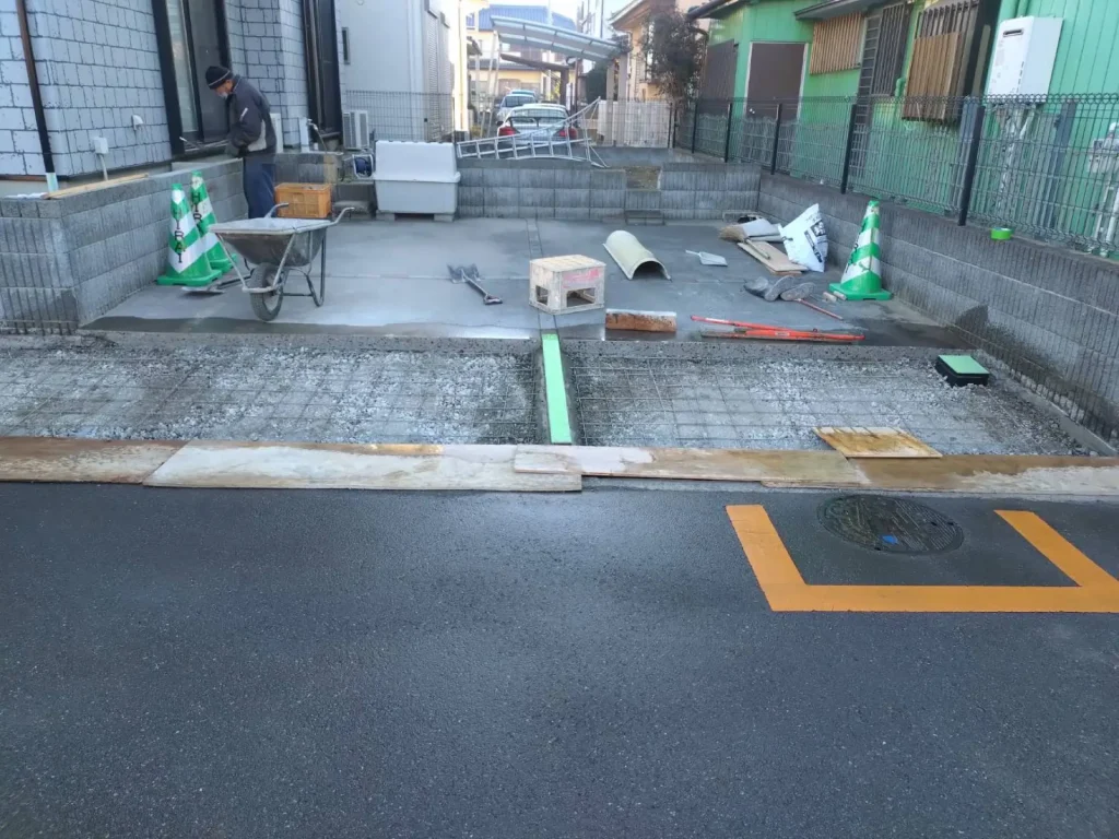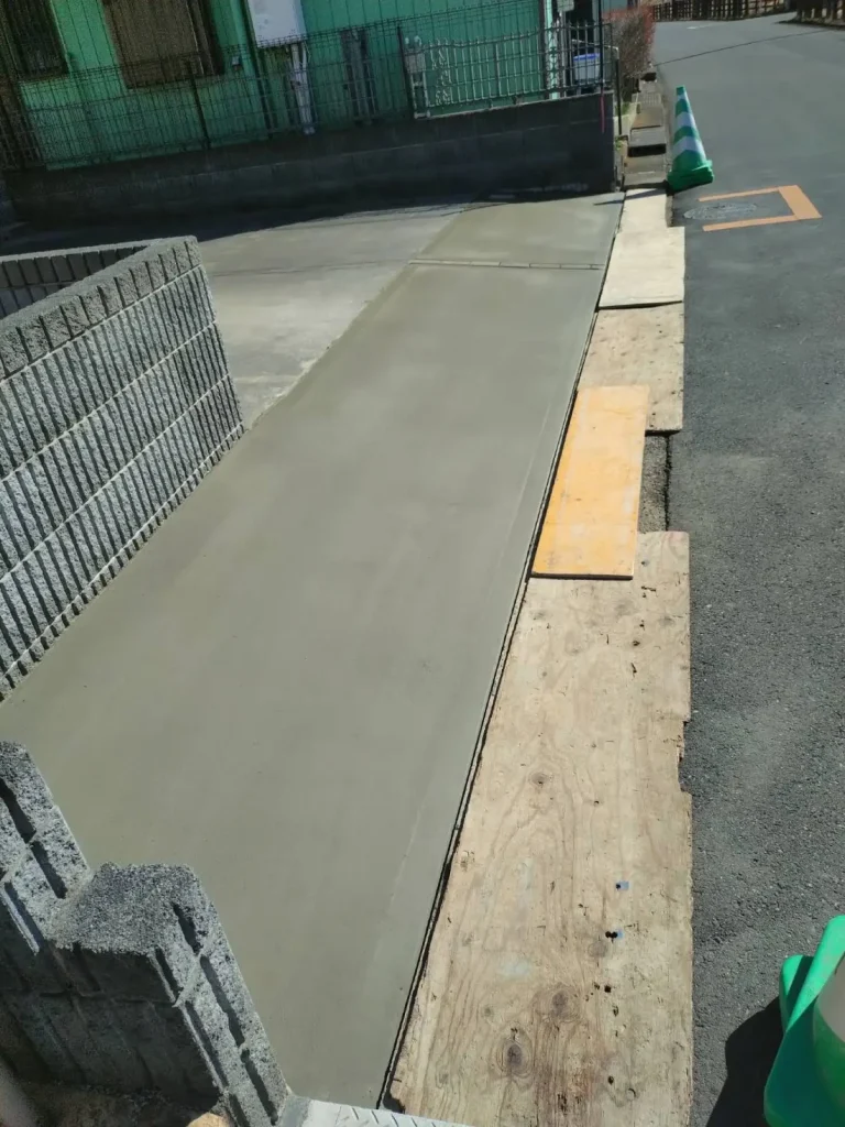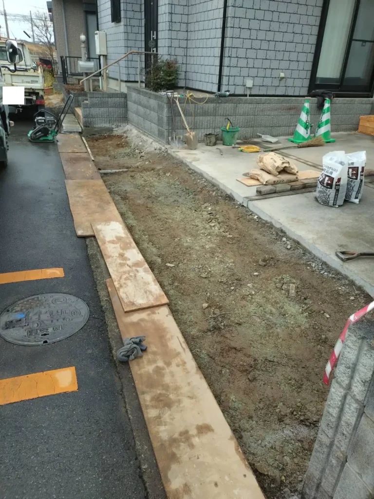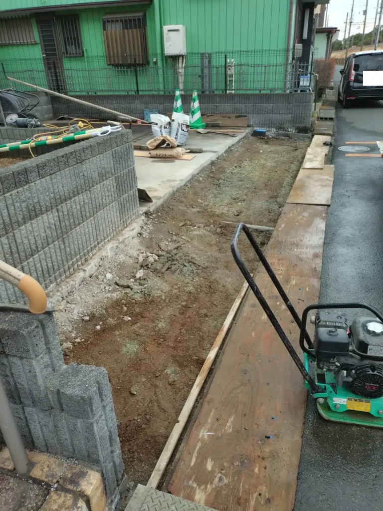 久喜市で駐車場側溝側の段差補修工事が完了しました。