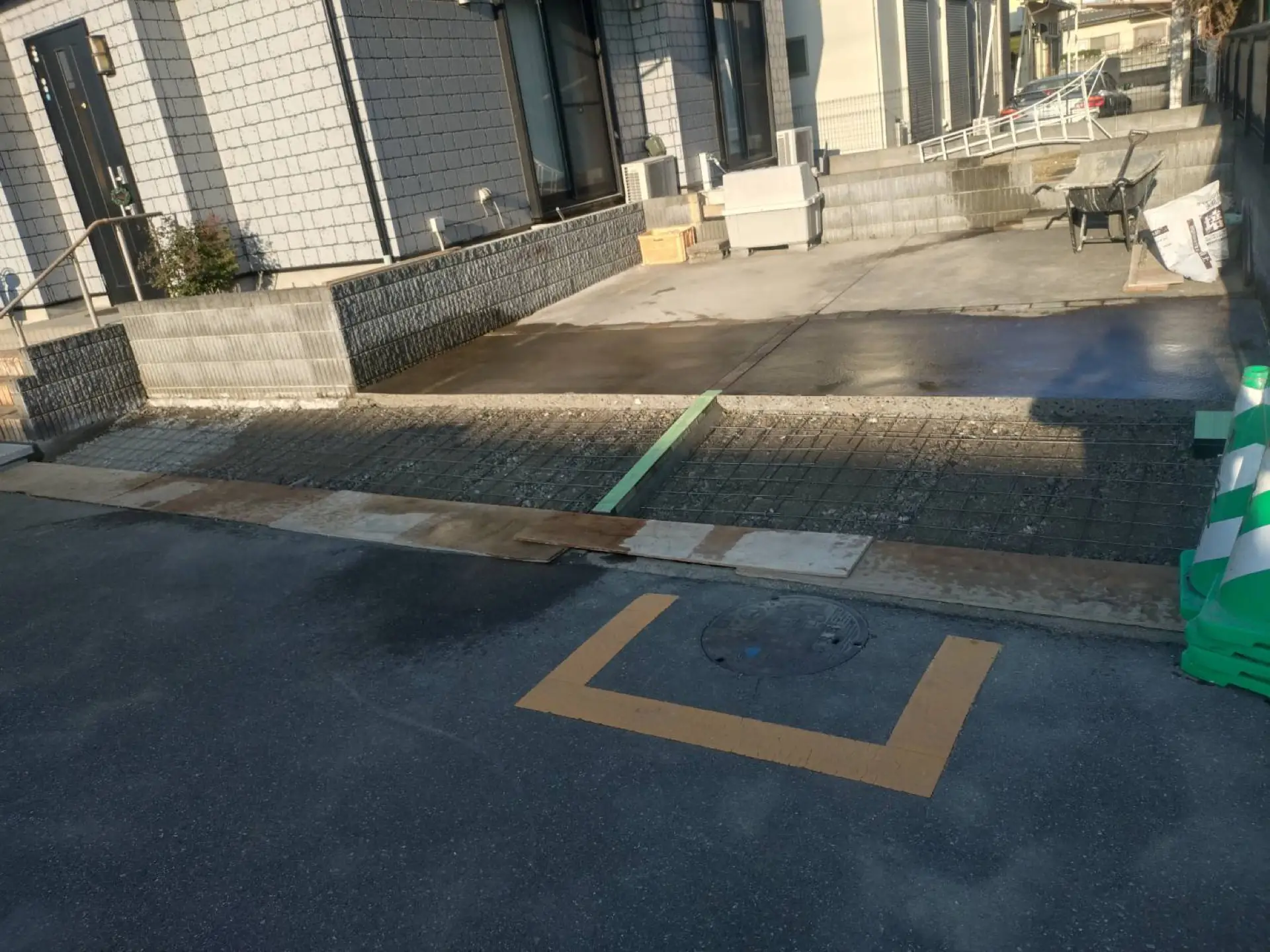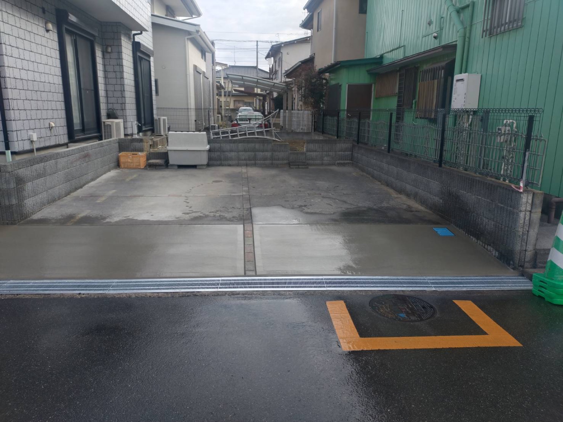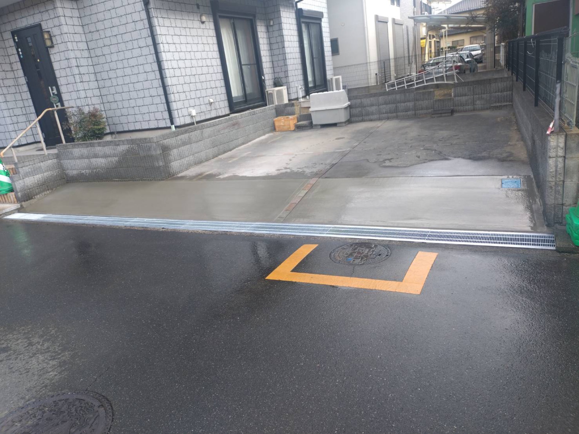 久喜市で駐車場側溝側の段差補修工事が完了しました。