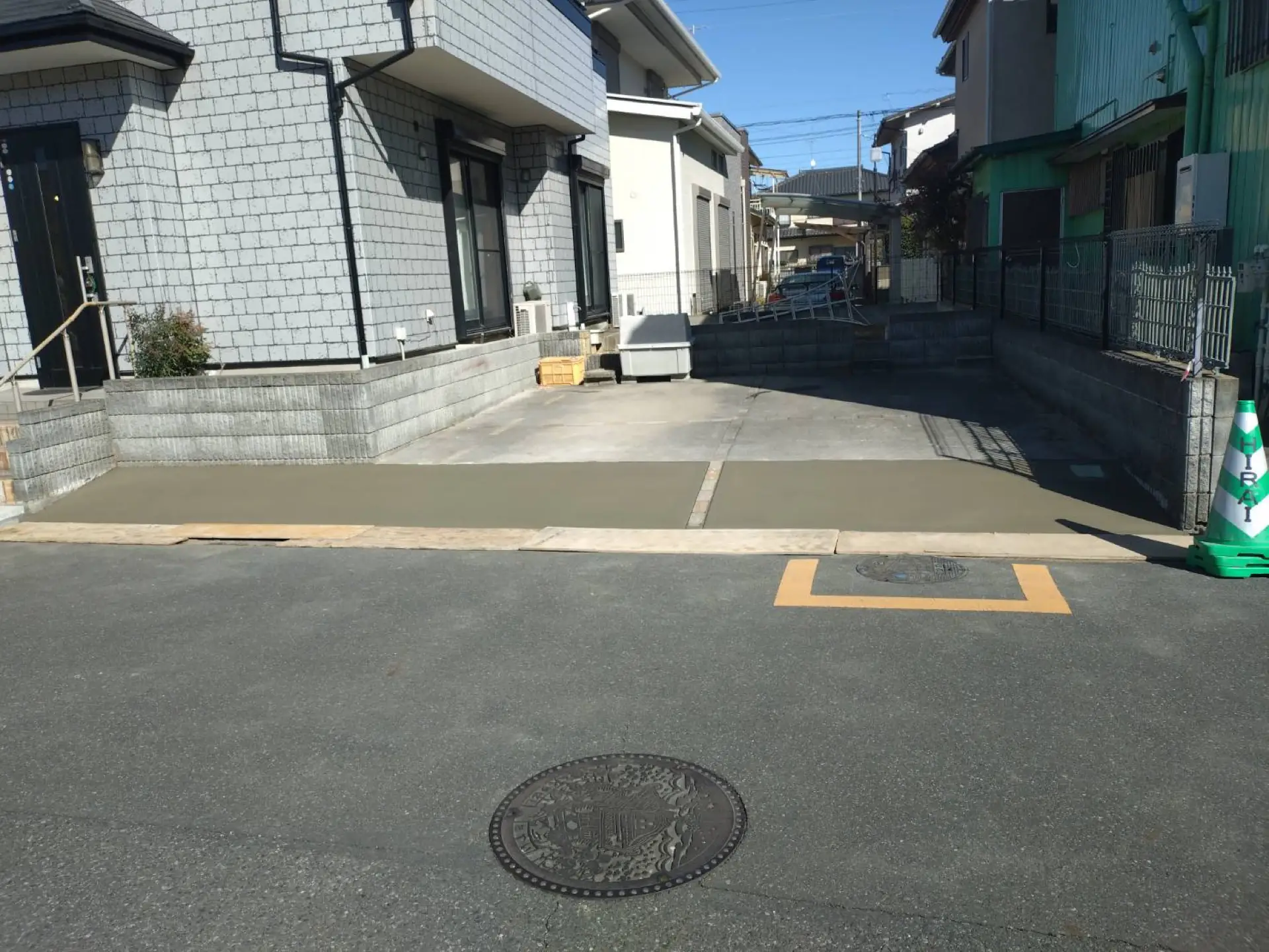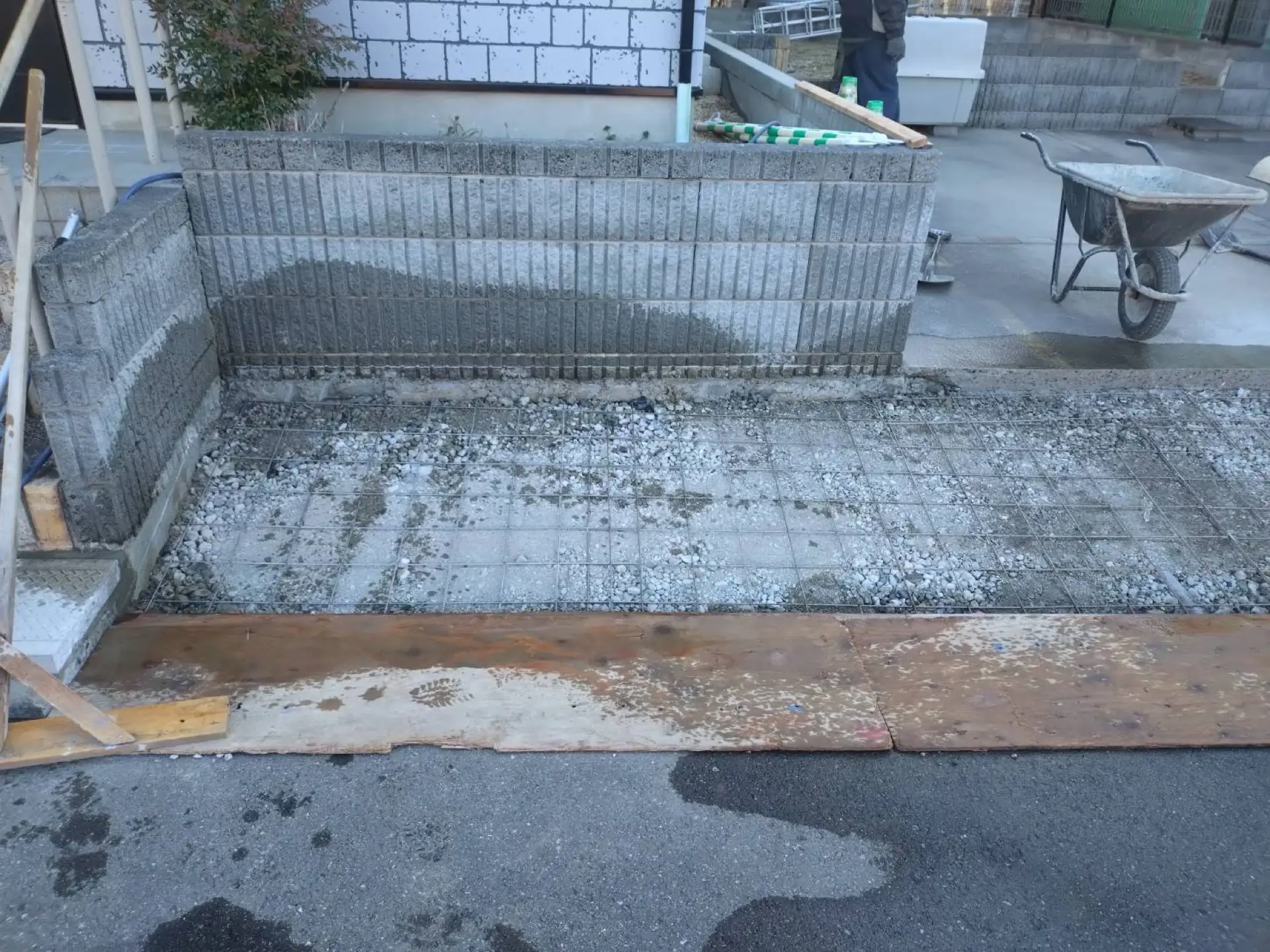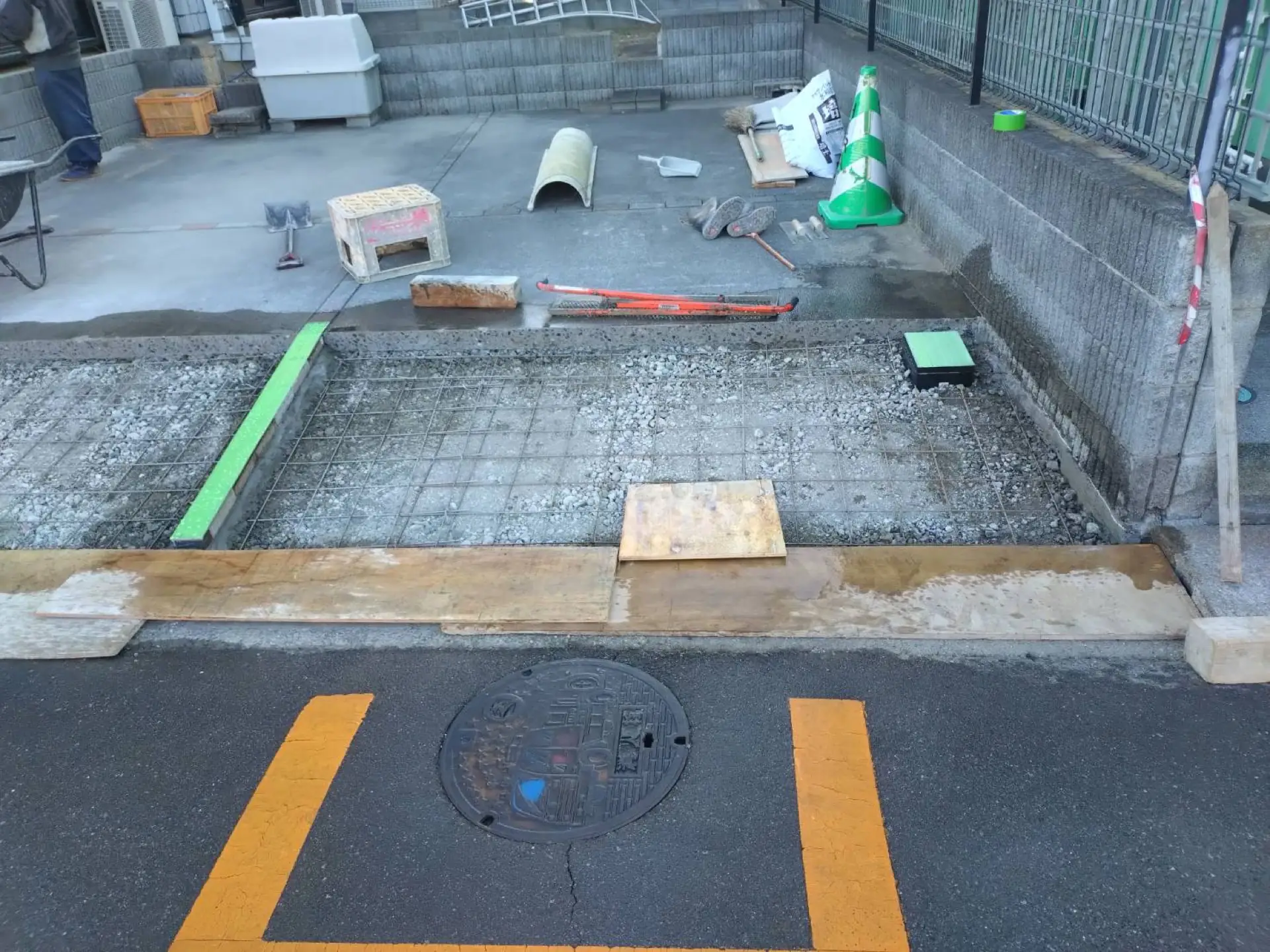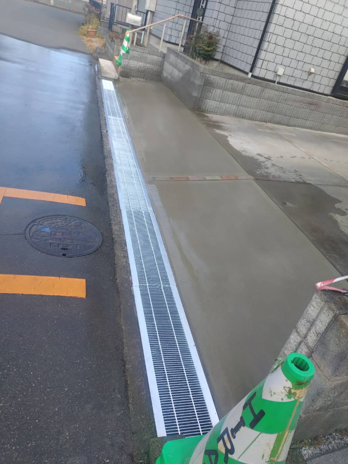 久喜市で駐車場側溝側の段差補修工事が完了しました。