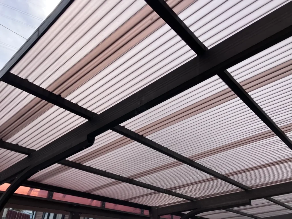 ヒライエクステリア今回は、お客様のご要望に合わせて波板のポリカ波板を採用しました。