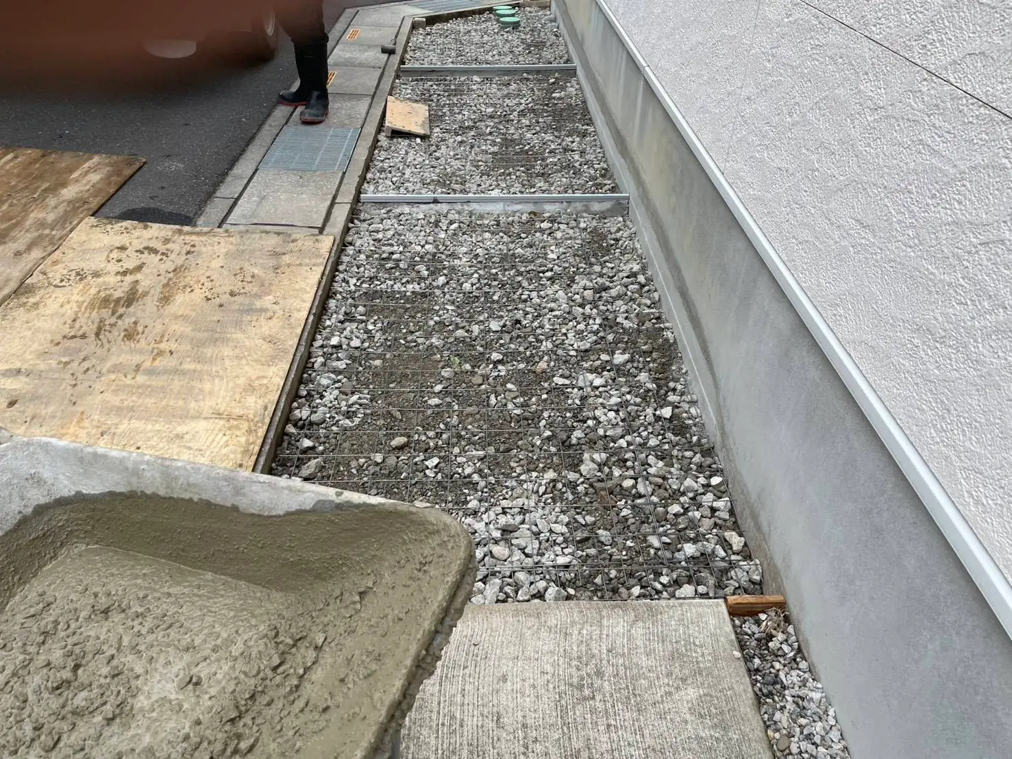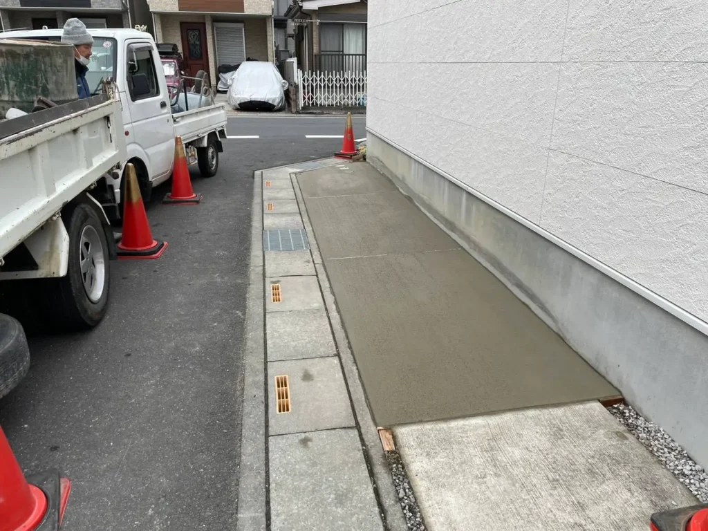 今回のお客様は、弊社のお客様が紹介してくれたお客様で駐車場と家の脇をコンクリートにしたいと初回お問い合わせをいただきました。