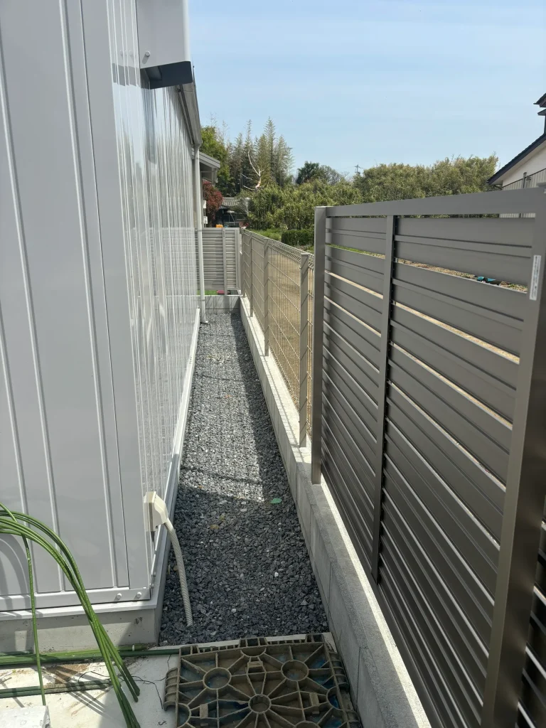 ヒライエクステリア今回は、お客様のご要望に合わせた目隠しフェンスとメッシュフェンス工事が完了しました。