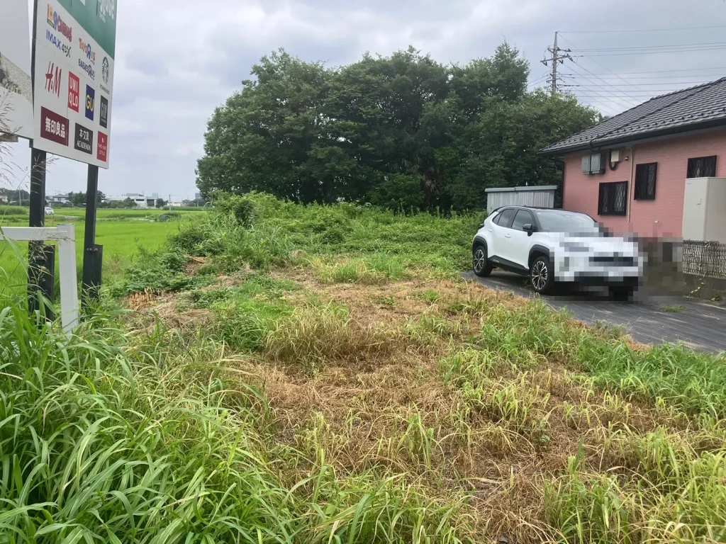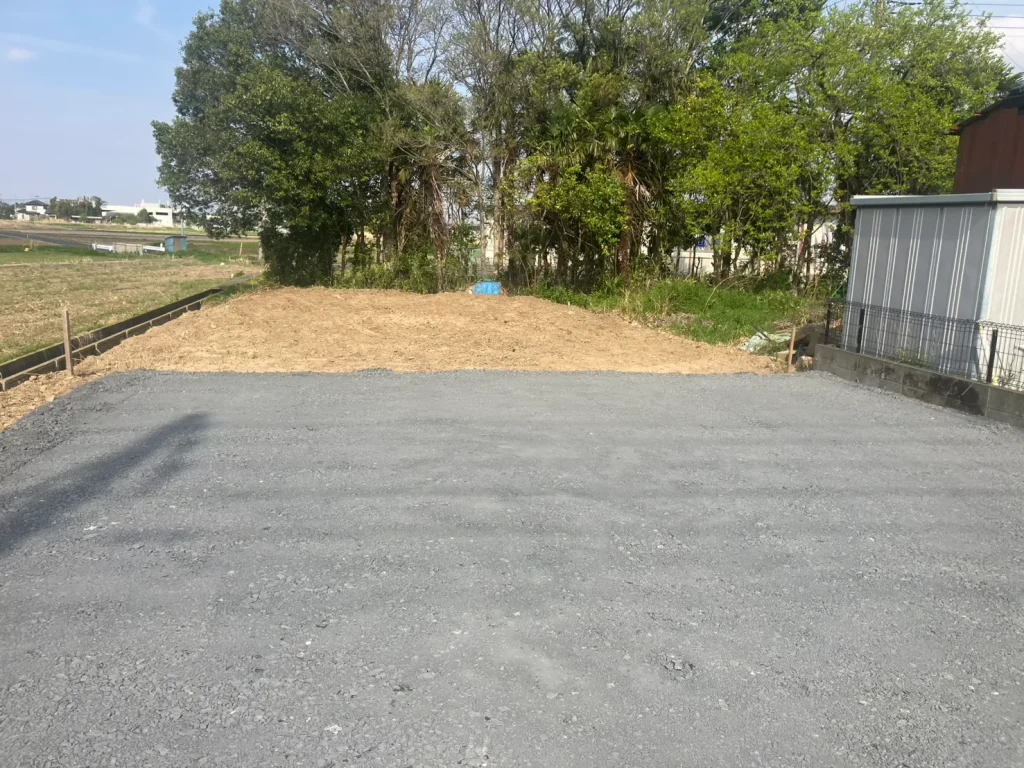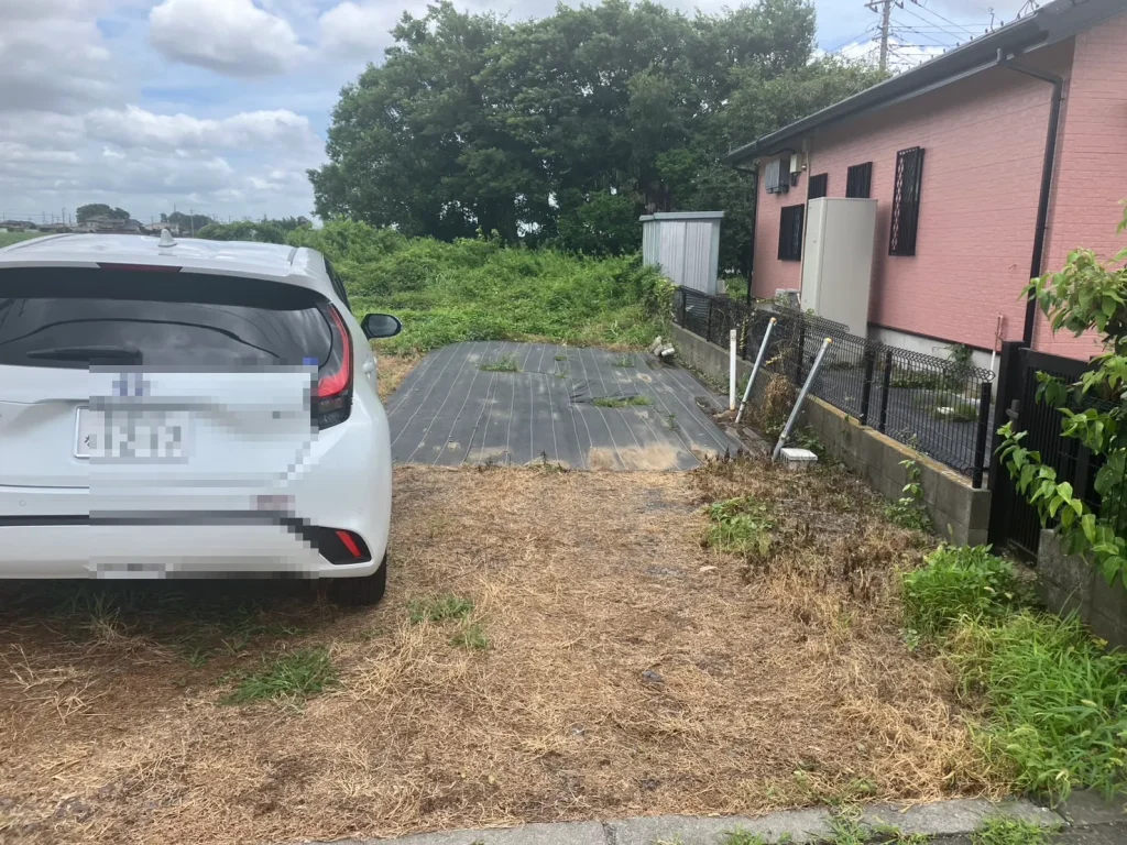 今回のお客様は、裏庭の整備となります。雑草の除去と砂利を入れて、駐車場にしたいと思っています。雑木の撤去もお願いしたいと思います。と初回お問い合わせをいただきました。